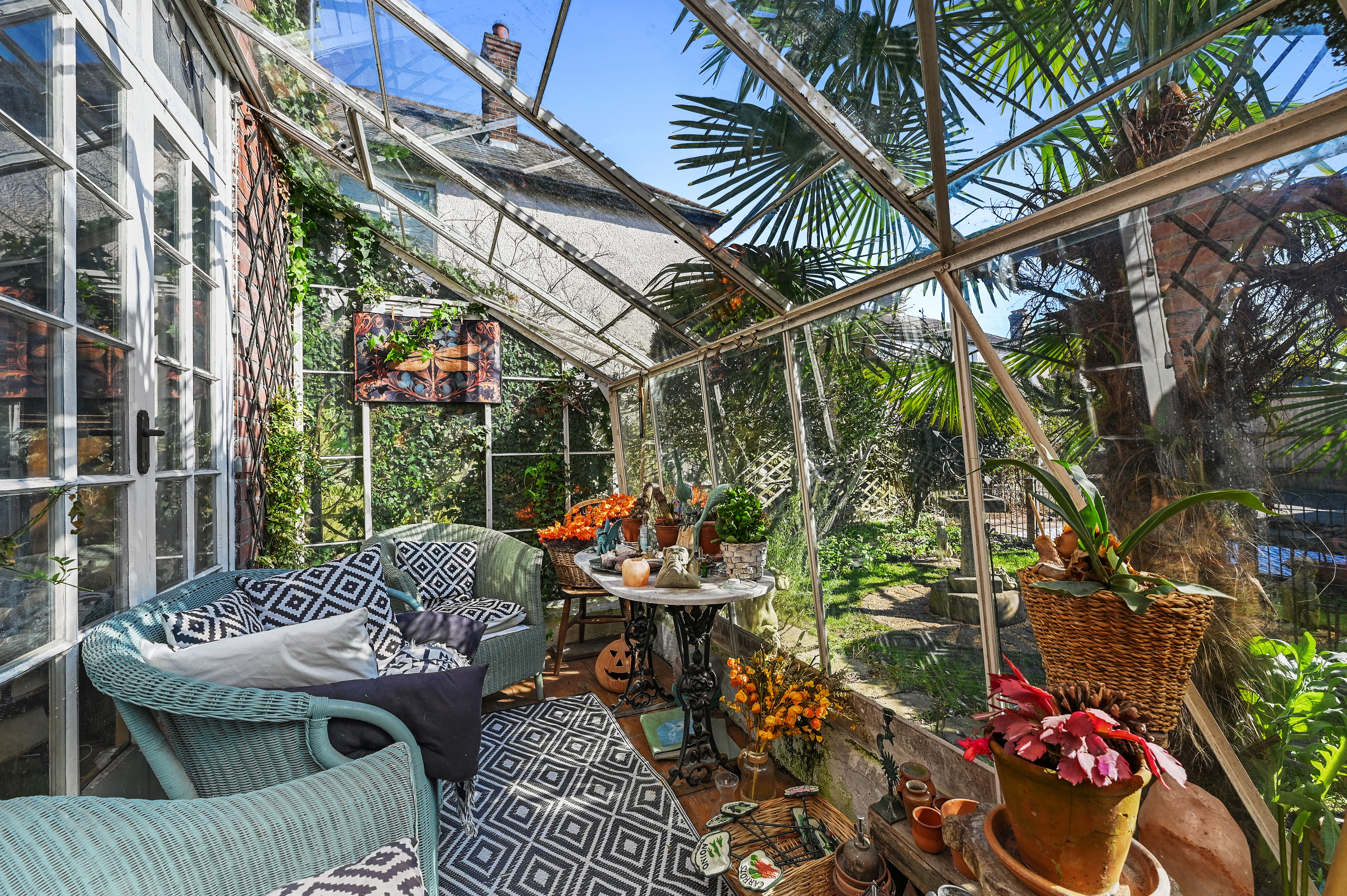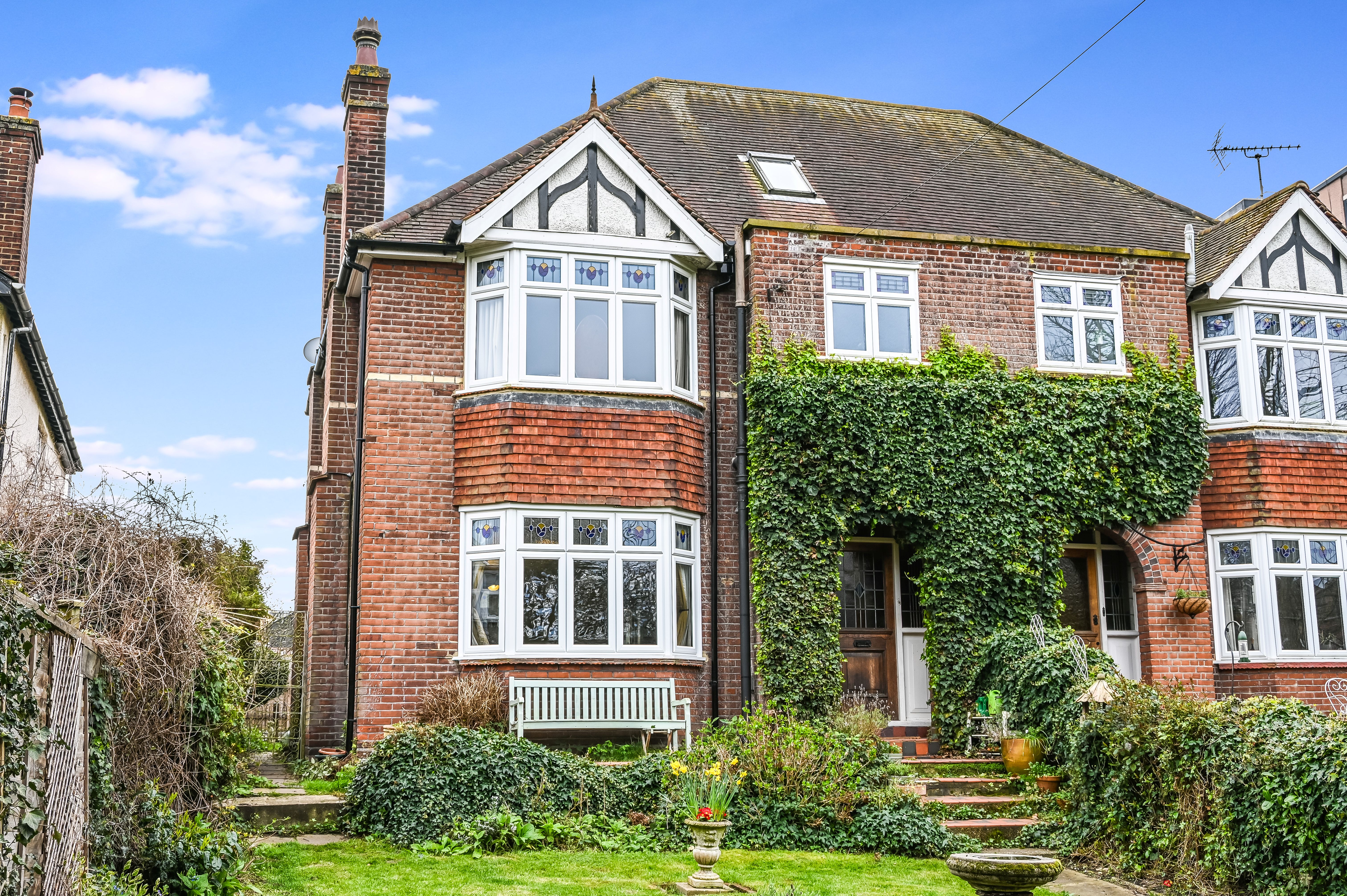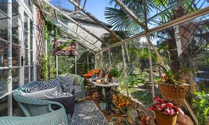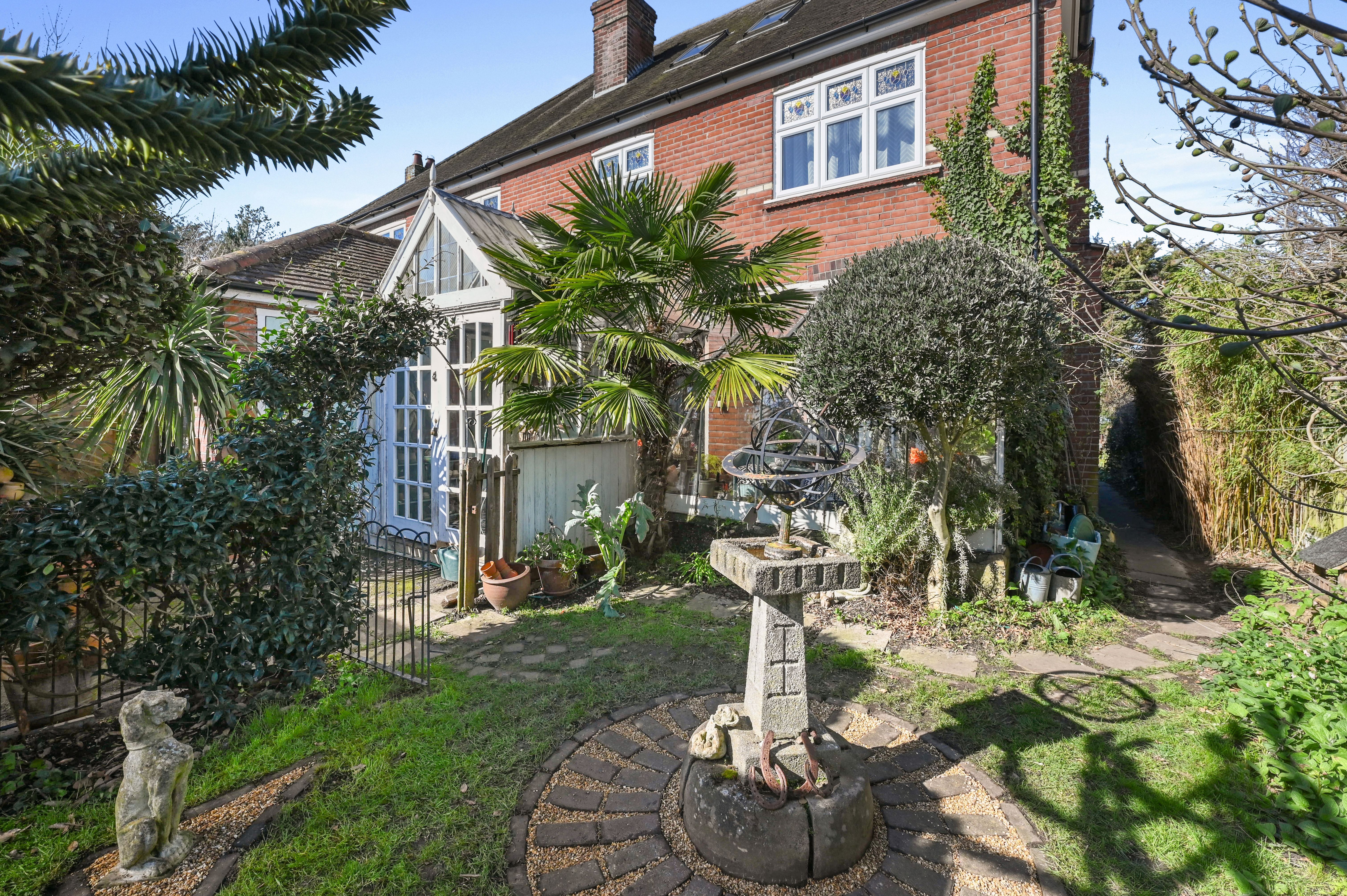 There is a generous sized front garden which is mainly laid to lawn as well as featuring an array of borders, mature trees, shrubbery and an allotment. Alongside runs a path with steps leading up to the front door. To the rear of the house is another pretty garden which with the inclusion of a Fig, Bay, Olive and Monkey Puzzle Tree has an exotic feel. There is also a gated private driveway providing valuable off street parking as well as a double garage and car port.
