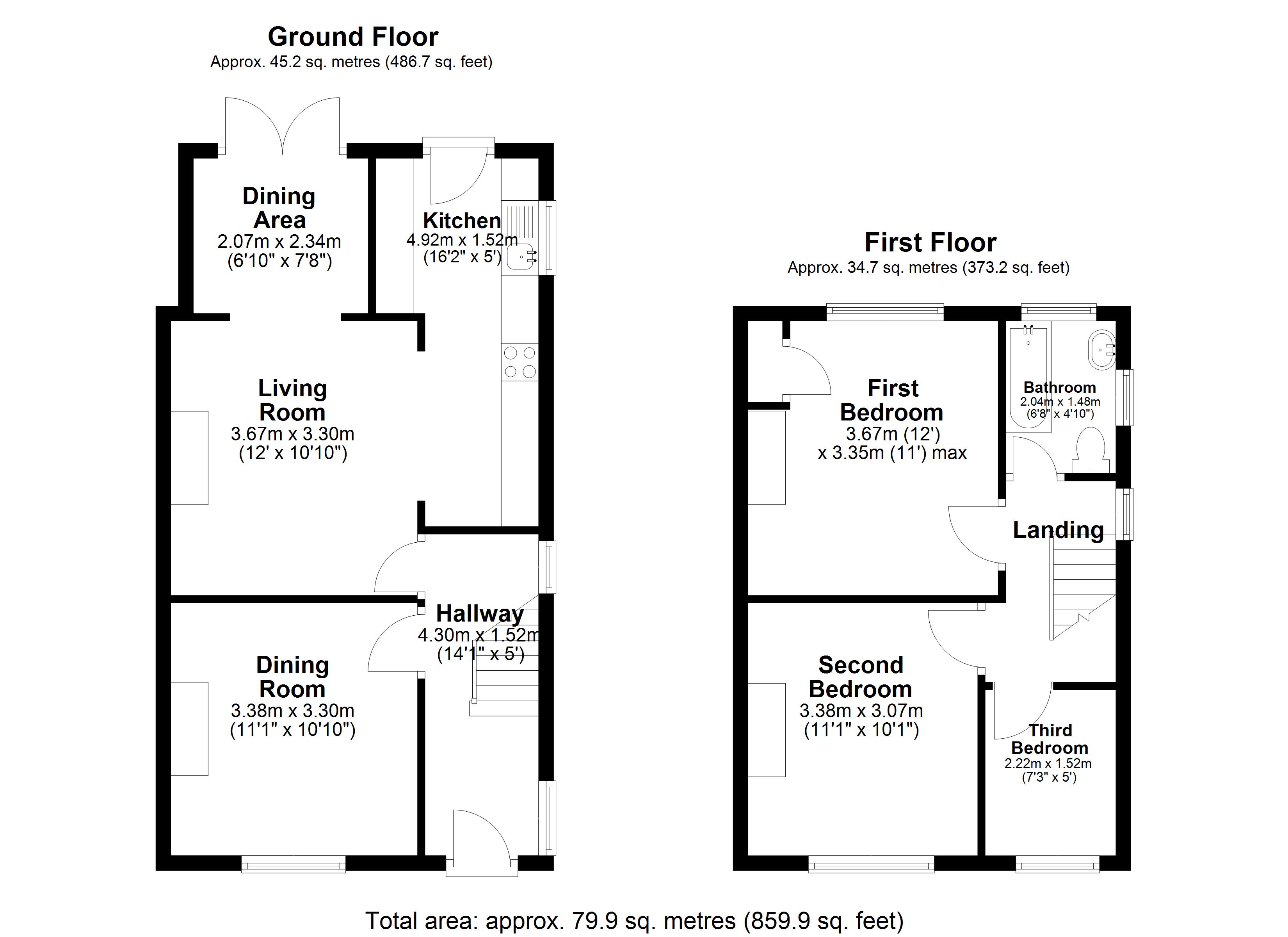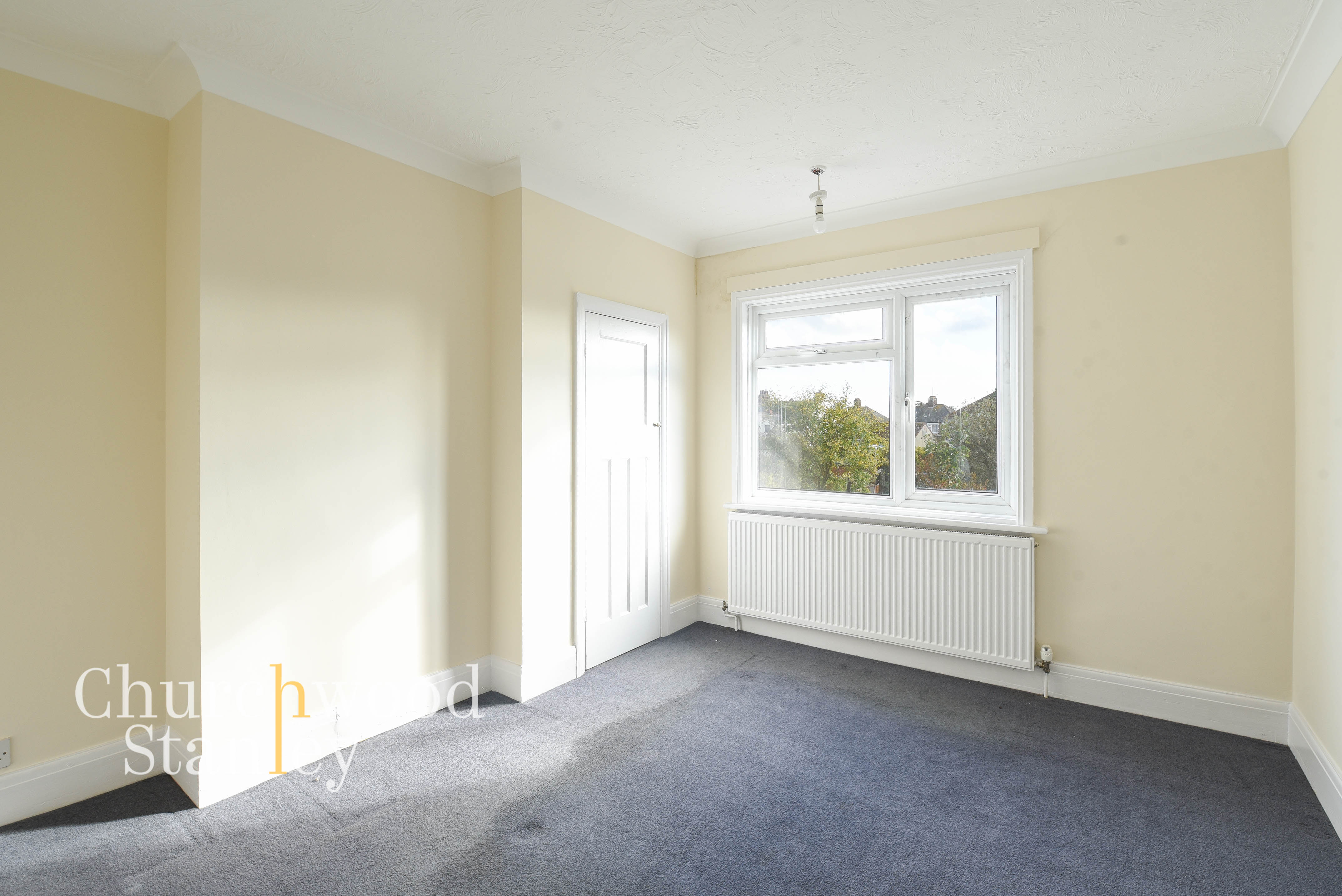 The main bedroom, positioned at the rear, overlooks the garden and offers a calm retreat. A built-in airing cupboard provides handy storage, and the neutral décor ensures a fresh, airy feel. The second bedroom, at the front, mirrors its proportions and includes a decorative fireplace — a feature that adds warmth and personality. The third bedroom, also at the front, makes an ideal child’s room, nursery, or home office, with a pleasant outlook across the street.