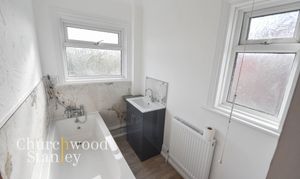 Completely renewed in September 2025, this stylish bathroom blends crisp modern finishes with a touch of luxury. The white suite includes a deep panelled bath with mixer shower, complemented by elegant marble-effect wall panels and a sleek vanity unit with chrome fittings. Natural light pours in through two frosted uPVC windows, giving the space a bright and airy feel while maintaining privacy. Finished with contemporary vinyl flooring and fresh décor throughout, it’s a clean, modern space designed for comfort and practicality.