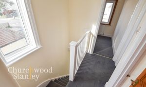A bright and well-presented landing offering access to all three first-floor bedrooms and the newly fitted bathroom. Natural light streams in from the side window, illuminating the soft neutral décor and freshly carpeted staircase. The space feels open and welcoming, with clean lines and a simple layout that enhances the home’s sense of flow between rooms. Practical and airy, it perfectly links the private upper floor accommodation.
