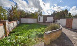Enjoying a southerly aspect, the rear garden captures the sun throughout the day, making it a lovely private outdoor space to relax or entertain. A mix of lawn and patio areas offers plenty of room for seating, dining, or play, all enclosed by brick and rendered walls for privacy. To the rear sits a garage-sized outbuilding, equipped with light and power, providing excellent potential for use as a workshop, home gym, or garden studio. With space, sunshine, and versatility, this garden is an ideal complement to the home’s accommodation.