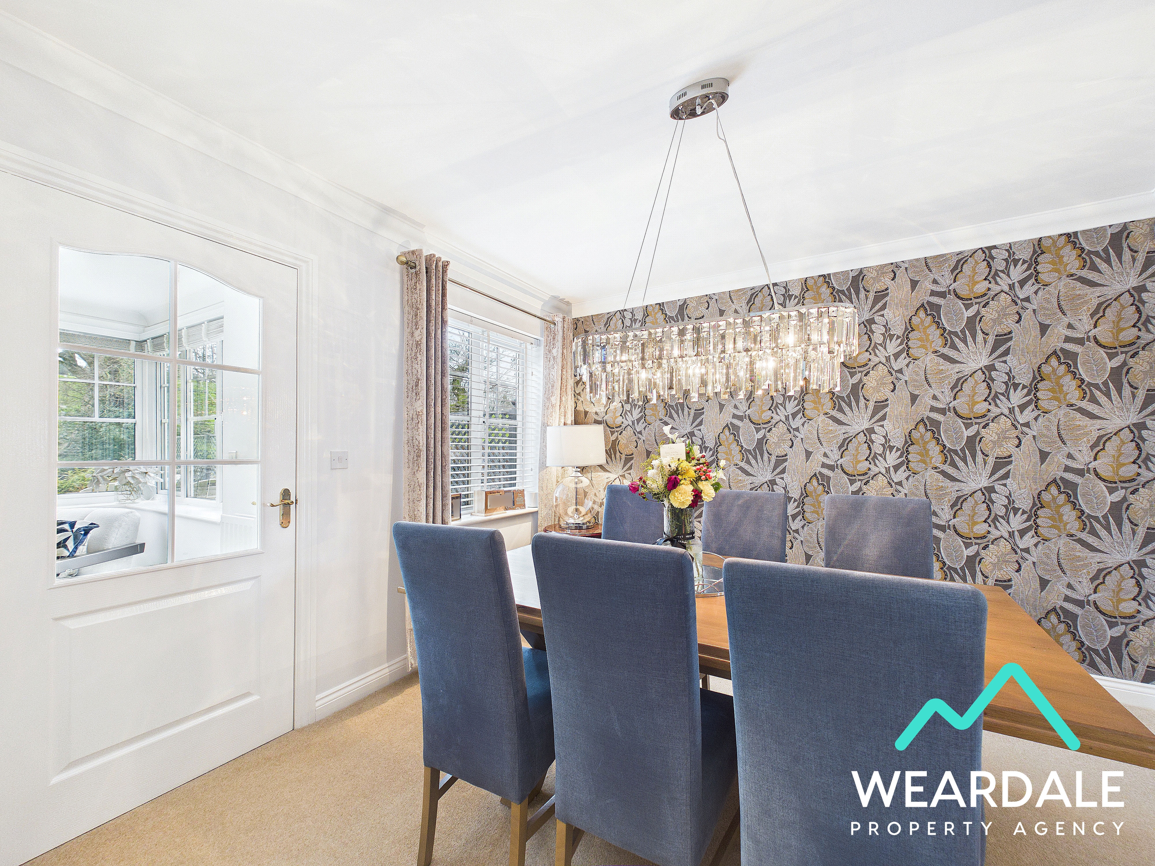 - Positioned to the rear of the property, being open-plan with the living room, and providing onward internal access to the kitchen and garden room - Double-glazed uPVC window to the North-East aspect, looking over the rear garden - Carpeted - Neutrally decorated - Central ceiling light fitting - Radiator - Space for dining room furniture