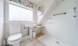On the first floor, the property provides three bedrooms, two generous doubles and a further single, served by a contemporary family bathroom complete with a walk-in shower.