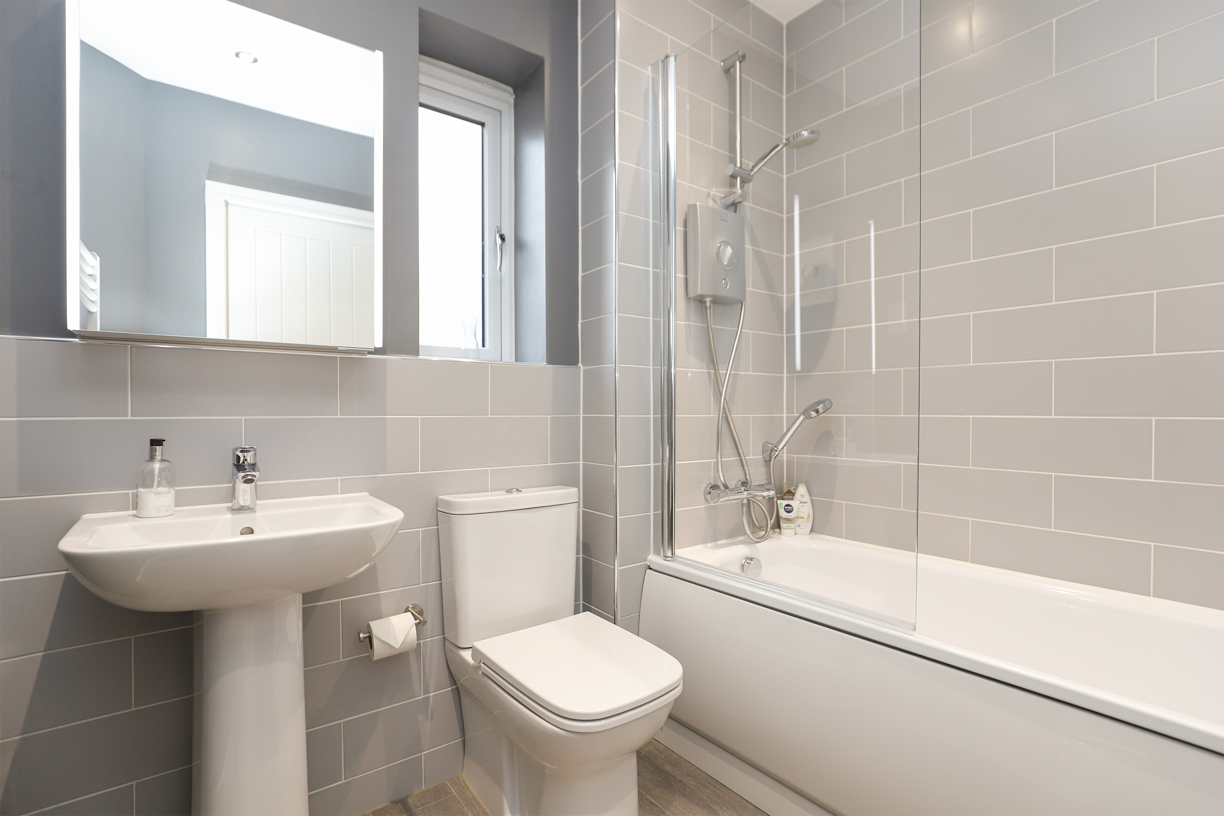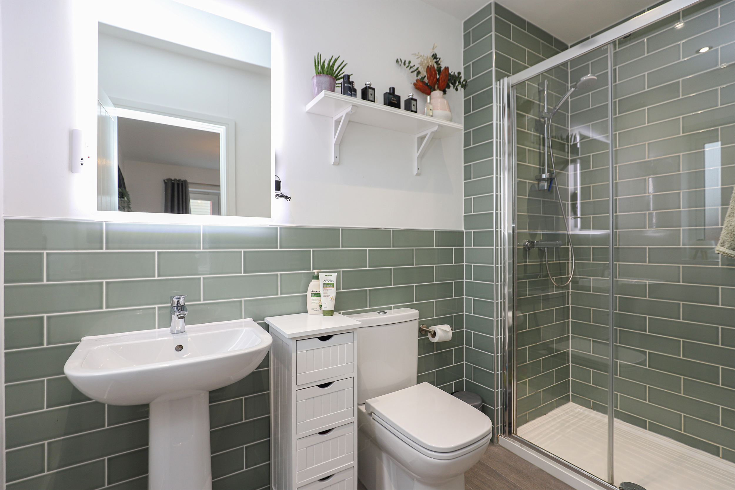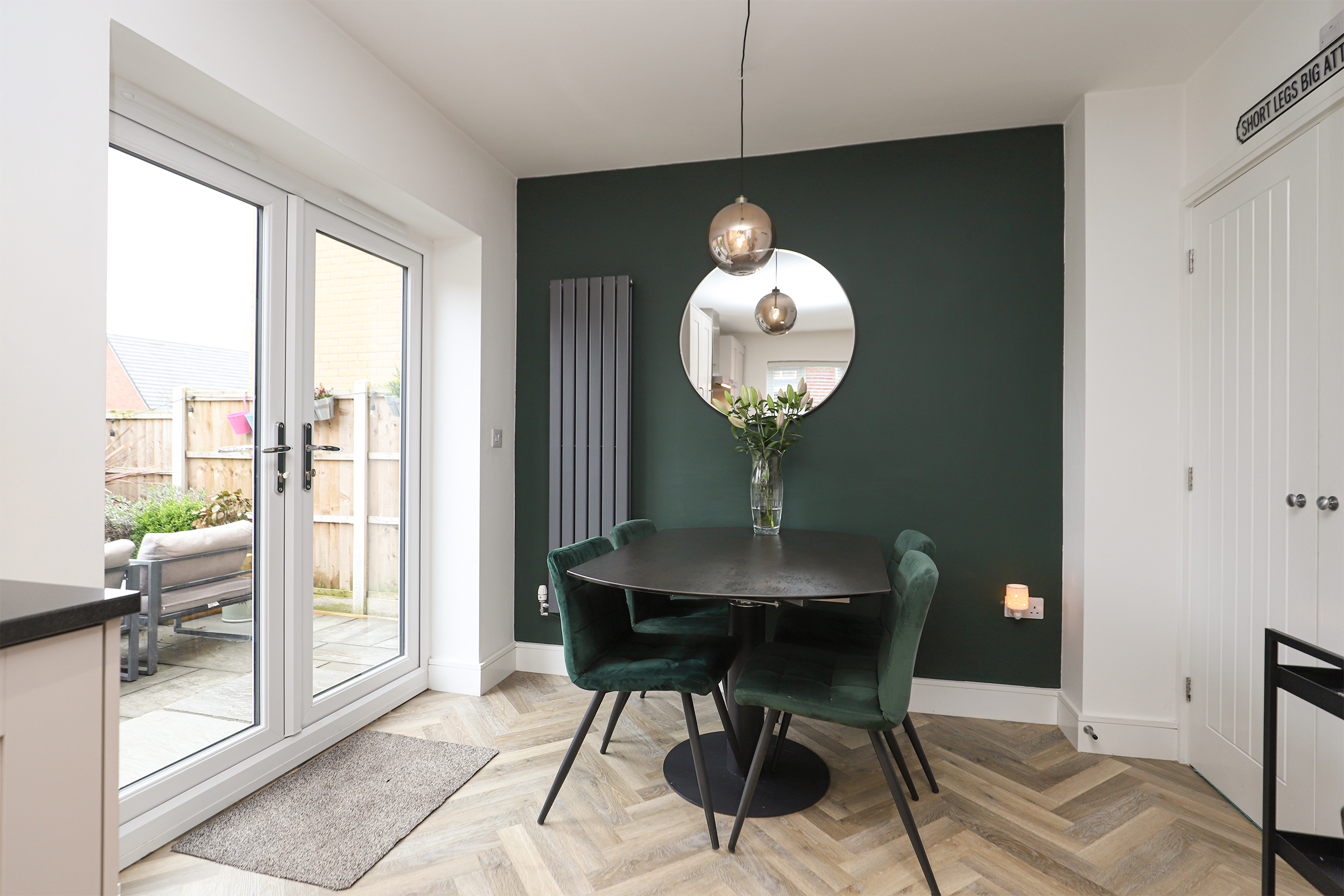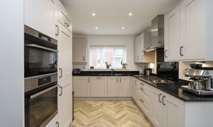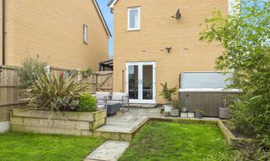 There's ample living & dining space on the ground floor, a contemporary-styled kitchen and dining room offers a full range of AEG integrated appliances, granite worksurfaces and doors opening onto the private rear. A generous dual-aspect living room enhances the ground floor, flooded with natural light alongside a bright entrance hall, downstairs w/c and a separate utility store. The three bedrooms are all beautifully appointed, the superb principal bedroom provides a luxury en-suite shower room, Juliet balcony and fitted wardrobes. An elegant family bathroom accompanies the two further bedrooms, with bedroom two benefitting from fitted wardrobes. To the rear is an enclosed & landscaped garden, offering plenty of space for children to play and seating areas for adults hosting friends and family. Driveway parking completes this highly desirable home.
