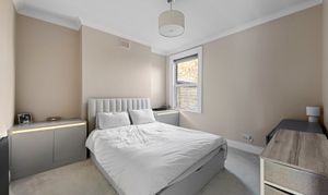 The main bedroom is next door and measures just under 12 feet square, which is a proper double with space for a wardrobe and side tables. It's got a neutral finish and good ceiling height, which gives it a real sense of space. The second bedroom is a tad smaller—around 8 feet by 6 feet—and realistically works best as a home office, nursery, or single guest room.