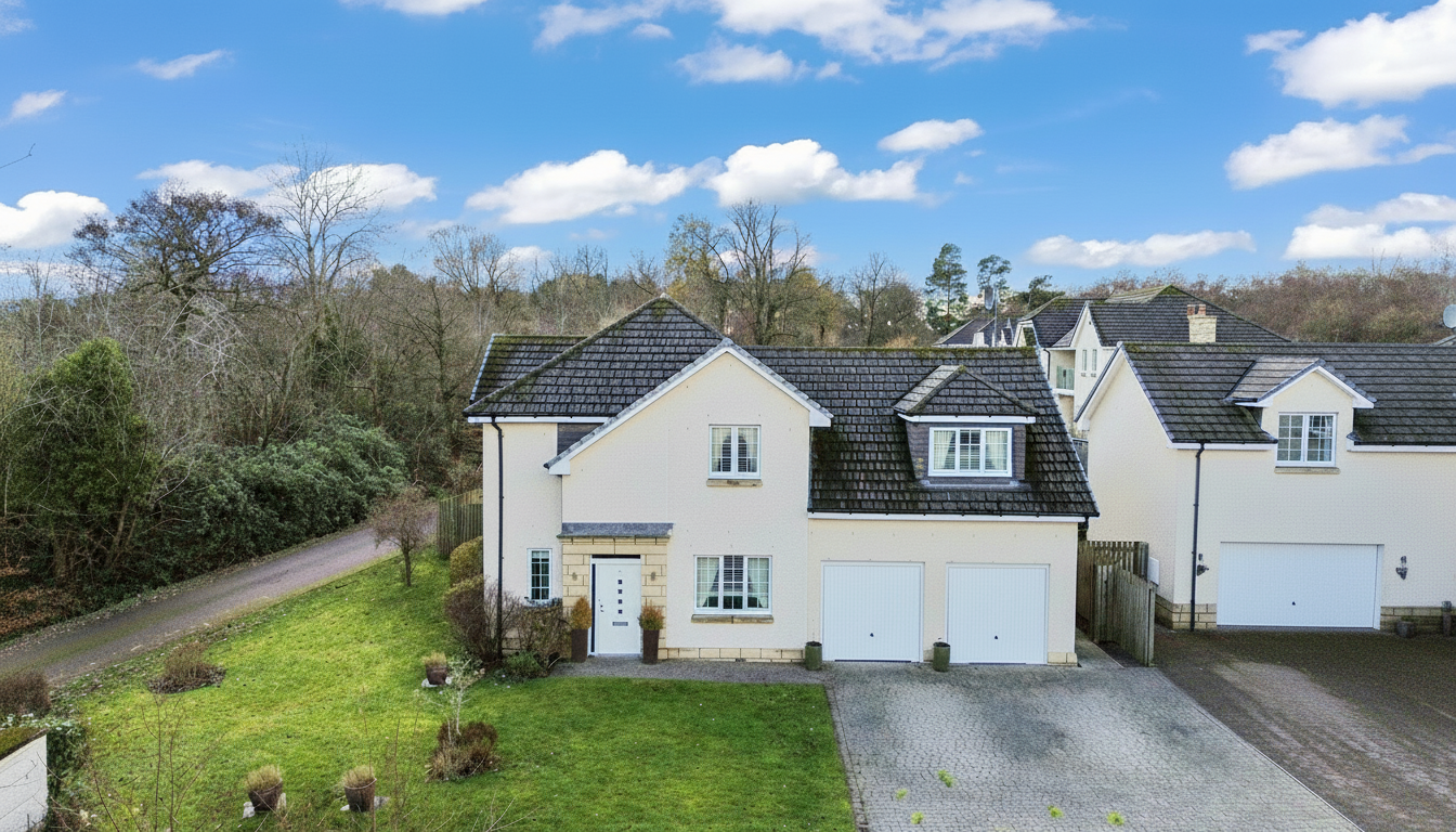 Set within arguably Bathgate’s most prestigious and sought-after locations, this exceptional four-bedroom detached home occupies a generous corner plot and offers a rare combination of luxury, tranquillity and natural surroundings. Built by McKernan Homes, the property has been owned since new and thoughtfully upgraded over time, presenting an outstanding specification throughout and a setting that feels both peaceful and truly special. With only three houses beyond its position, road traffic is minimal, and the neighbourhood is quiet, friendly and family-oriented, with a welcoming mix of young families and long-term residents