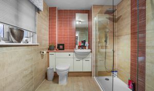The well-appointed family bathroom has also been finished with quality tiling, and a convenient linen cupboard completes the upper landing.
