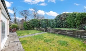 Externally, the home offers outstanding kerb appeal occupying a substantial corner plot with a multi-car driveway. The rear garden has been designed for relaxation, privacy and enjoyment, featuring a high-quality tiled patio area perfect for outdoor dining, a well-kept lawn, and an elevated section with mature hedging and shrubs that create natural screening.