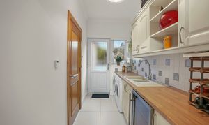 The kitchen itself was also upgraded at the same time and features modern cabinetry with integrated appliances. A utility room sits off the family area with direct access to the garden, while an internal door leads to the large double garage, complete with an electric door and excellent storage space.