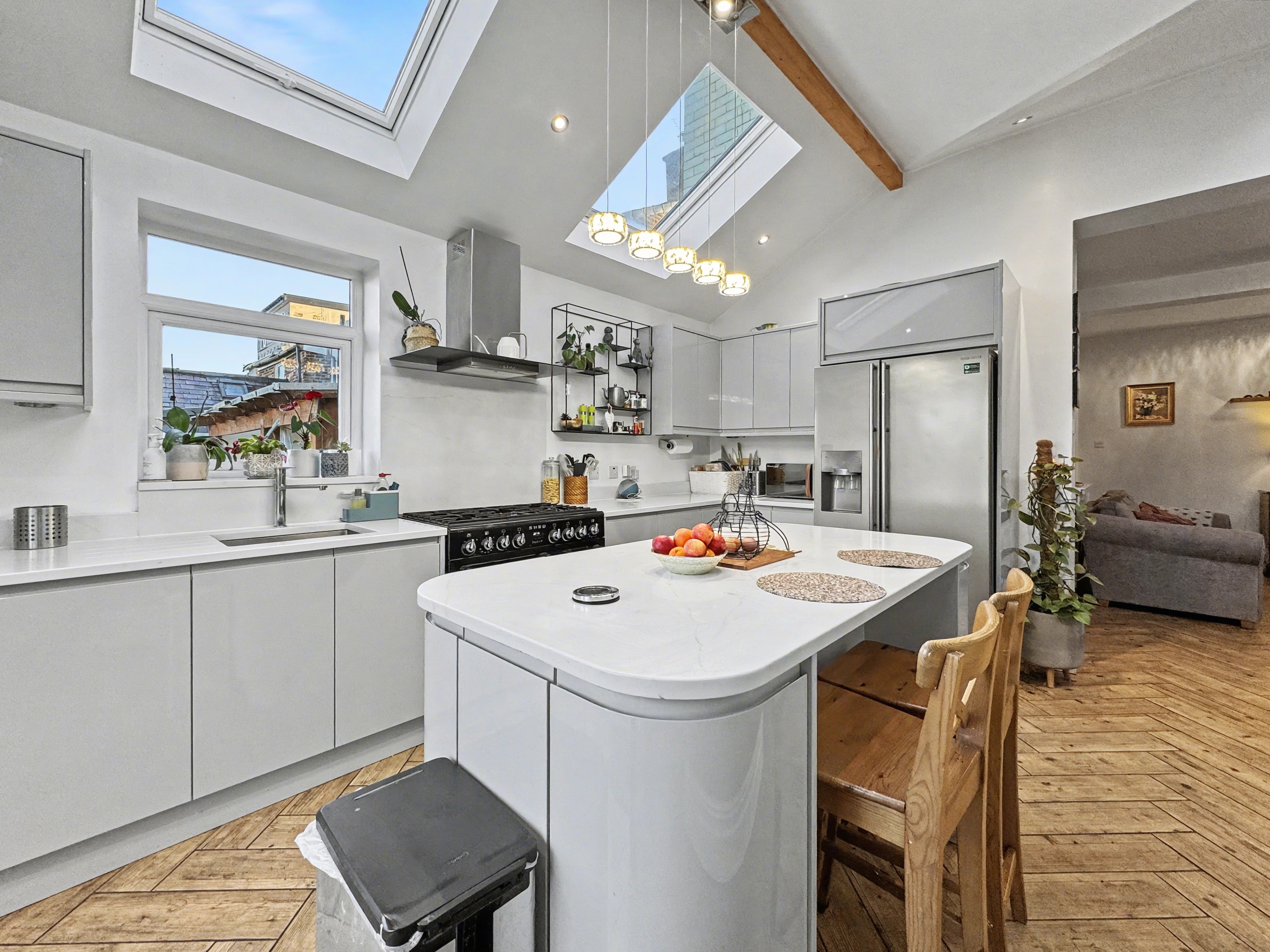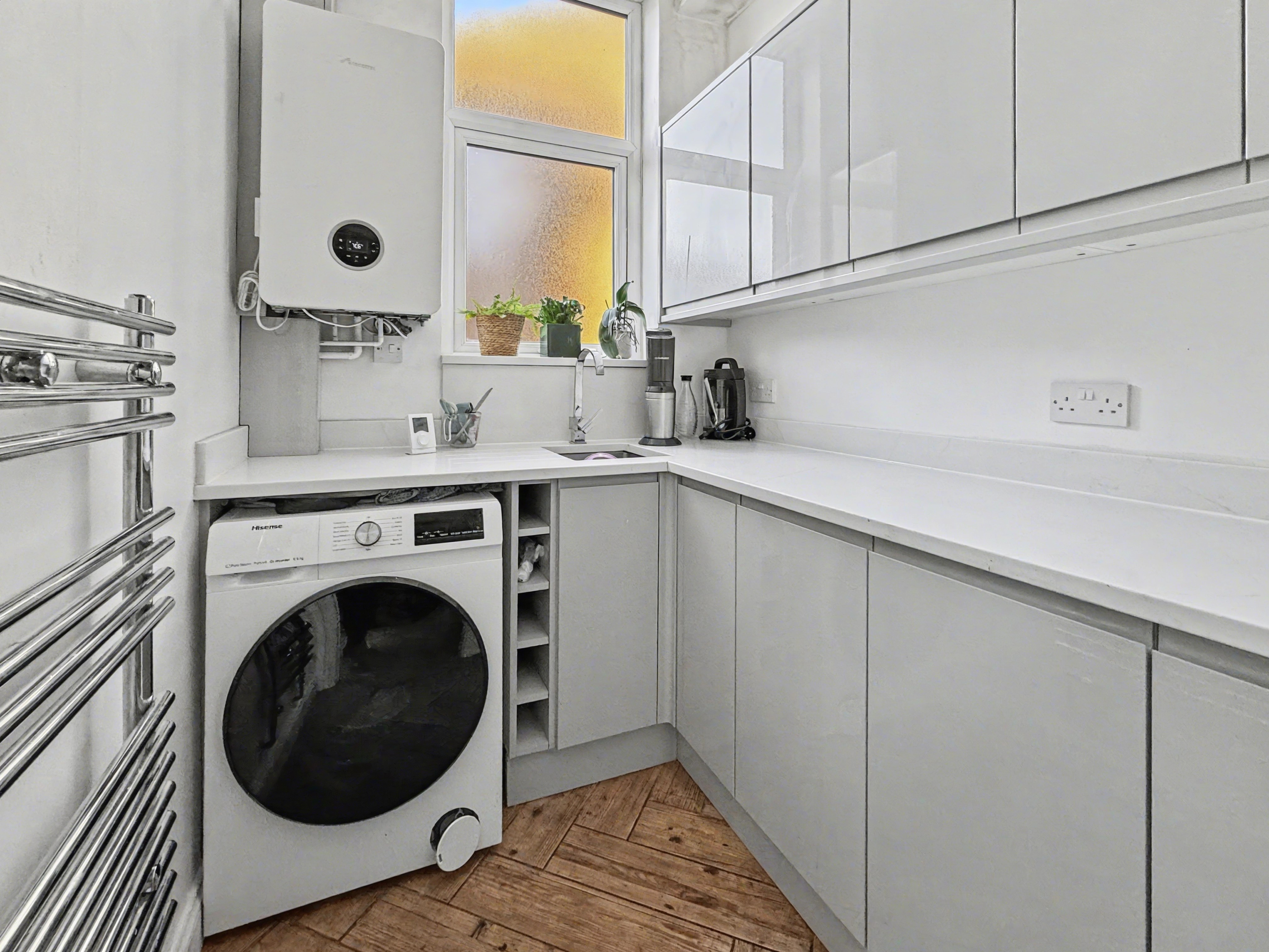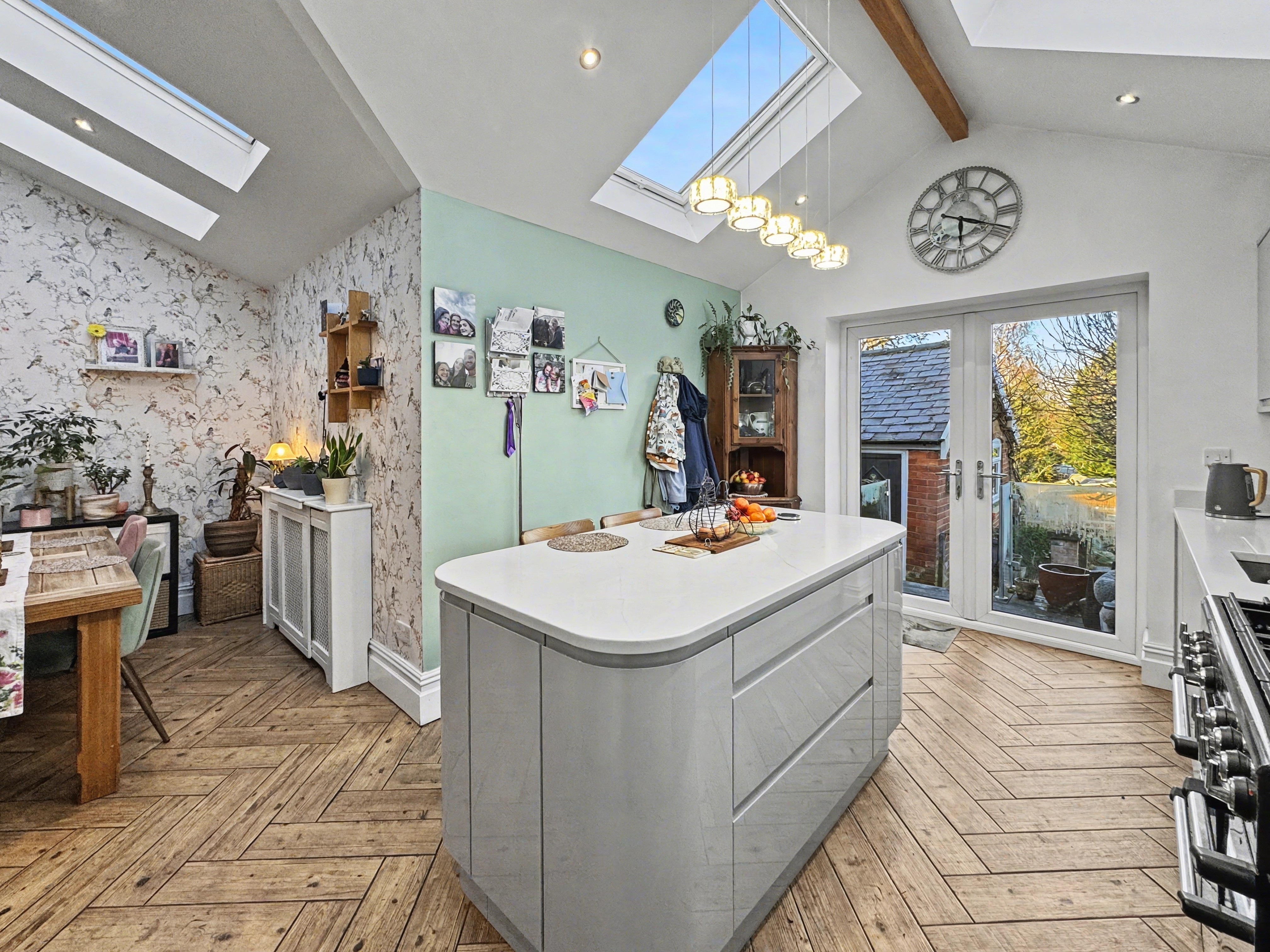 - Modern open-plan dining kitchen with separate utility room
