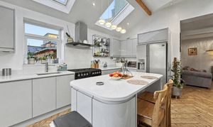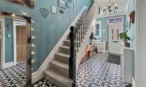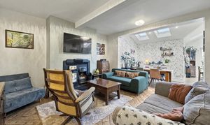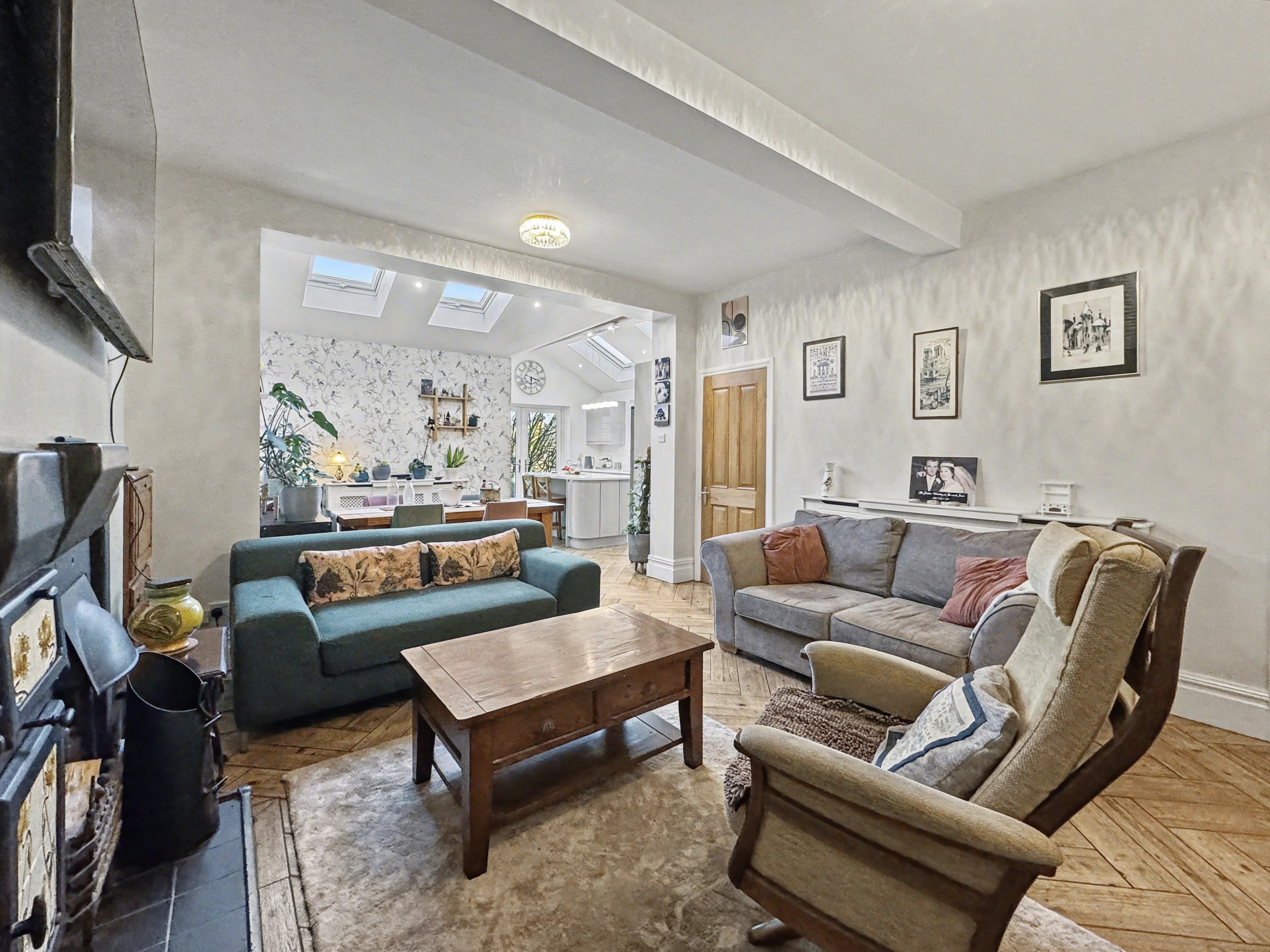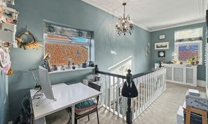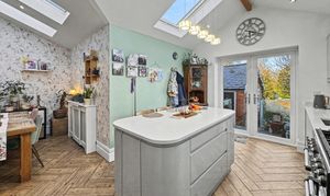 Inside, the main house combines period character with contemporary finishes, featuring a welcoming hallway, three generous reception rooms and a superb open-plan dining kitchen with French doors opening onto the garden. A newly fitted kitchen, separate utility room and modern ground-floor shower room complete the ground floor, while upstairs there are three double bedrooms and a stylish family bathroom.