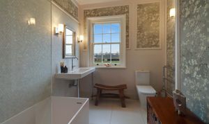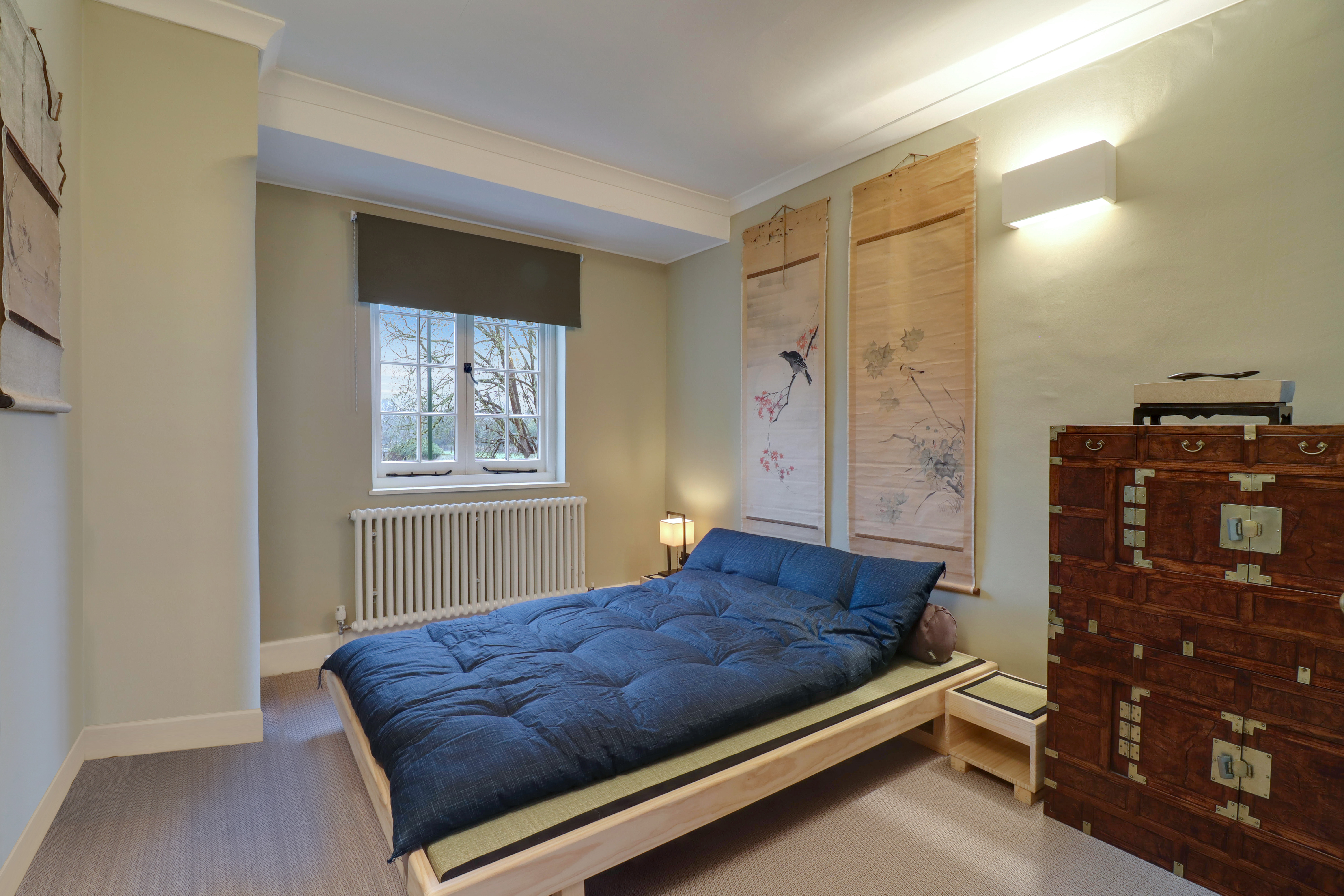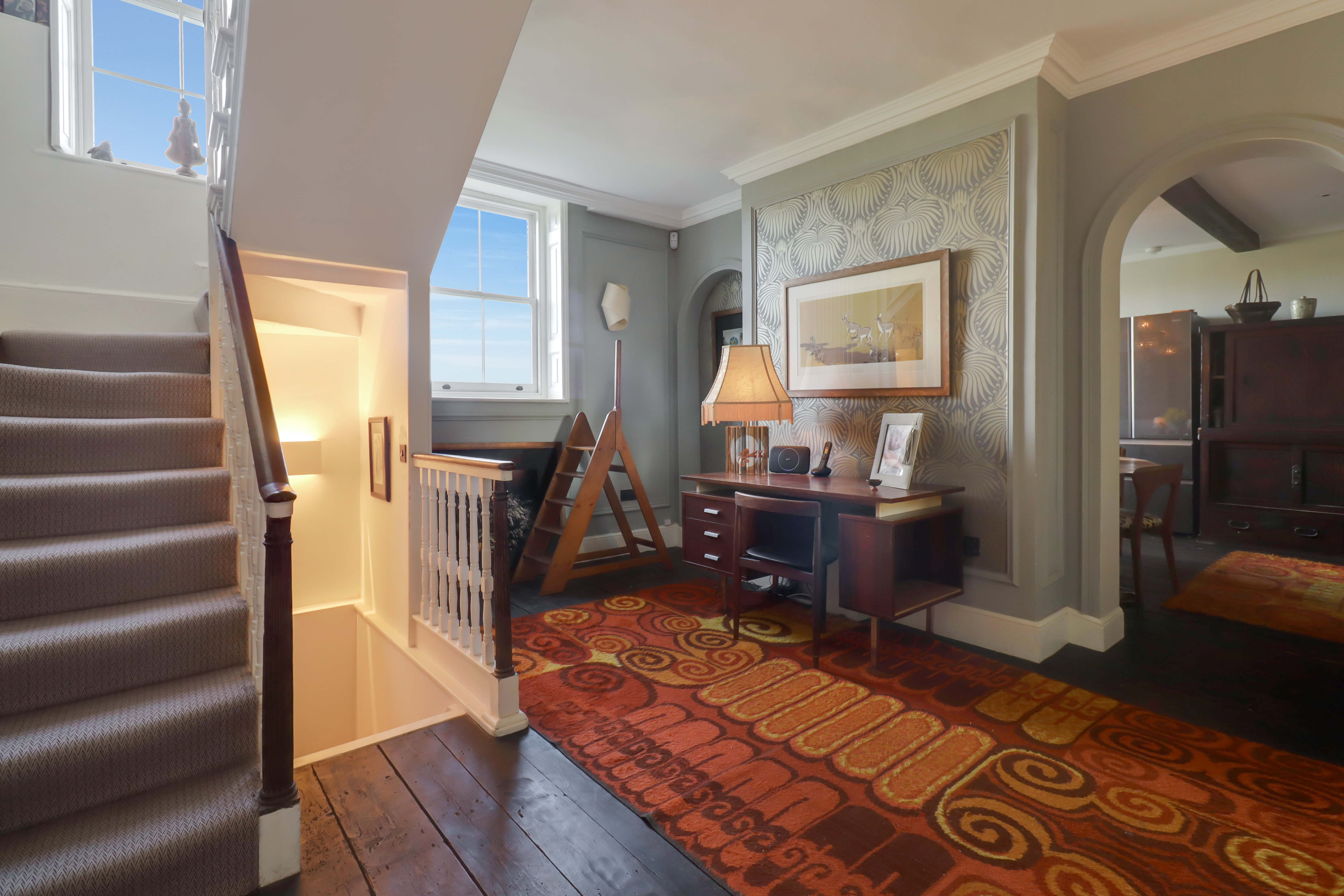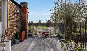 Upstairs, the principal bedroom suite enjoys far-reaching views, while additional bedrooms offer flexibility for home offices or dressing rooms. The stunning roof terrace presents a unique vantage point over the surrounding royal parkland, ideal for entertaining or quiet relaxation.