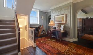 Combining timeless period elegance with high-quality modern finishes, the property features five well-proportioned bedrooms, providing ample accommodation for families or guests. The spacious entrance hall leads to a series of beautifully appointed reception rooms, each thoughtfully designed to maximise natural light and showcase the property's charming architectural details. The kitchen is fitted with premium appliances and bespoke cabinetry, ensuring both style and functionality.