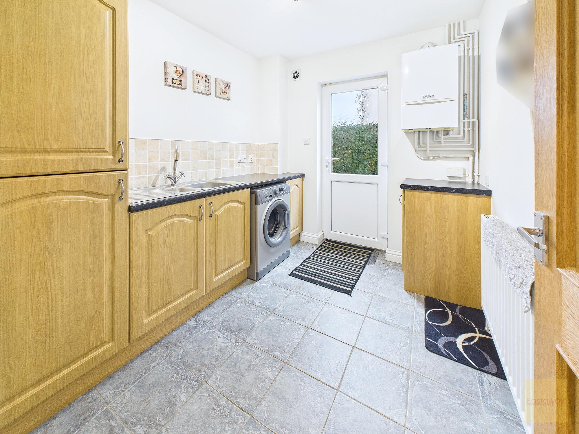 To the rear, everyday life really comes together. The kitchen and dining space is light, sociable and practical, with doors opening directly onto the garden and creating a lovely connection between inside and out. Whether it’s weekday dinners, weekend brunches or summer evenings with the doors open, this is a space designed to be lived in and enjoyed. A separate utility room keeps everything neatly organised, and the ground-floor WC is exactly where you want it.