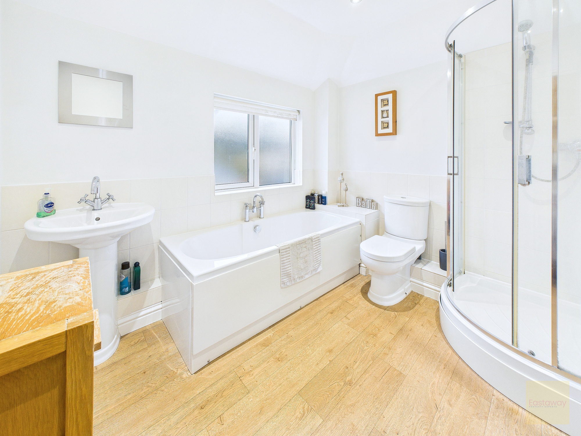 Upstairs, all three bedrooms are proper doubles, which makes a huge difference day to day. The principal bedroom feels calm and generous, complete with its own en suite, while the remaining bedrooms are equally flexible and ideal for family, guests or working from home. The main bathroom is beautifully presented, bright and spacious and very much in keeping with the rest of the house.