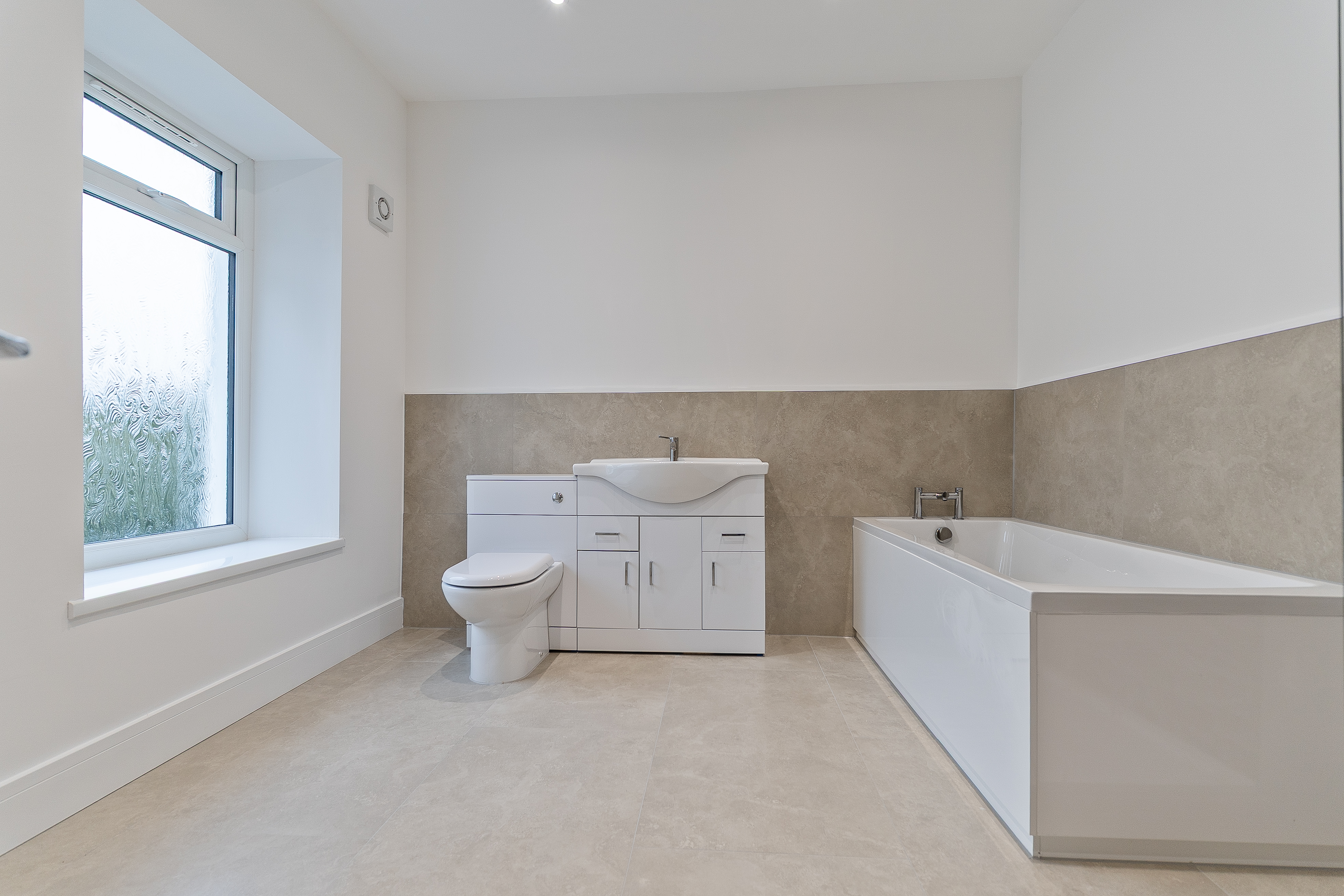 You enter the property through an initial hall space which leads directly into the main living area. The spacious lounge/diner is naturally bright, benefitting from both front and rear-facing windows that allow light to flow throughout the room. This generous area offers plenty of space for both seating and dining arrangements, making it ideal for modern family living and entertaining. From here, there is access through to the kitchen and stairs leading up to the first floor. The newly fitted kitchen is stylish and contemporary in design, featuring ample unit and worktop space, along with integrated appliances and modern finishes. Beyond the kitchen is a practical utility area providing additional storage and workspace, as well as access out to the rear garden.