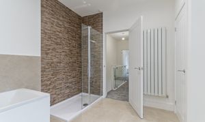 The first floor comprises three well-proportioned bedrooms, including two comfortable double rooms and a further single bedroom, each tastefully decorated and filled with natural light. Completing the first floor is the large family bathroom, which has been finished to a high standard and features both a bath and a walk-in shower, offering flexibility and luxury in equal measure.
