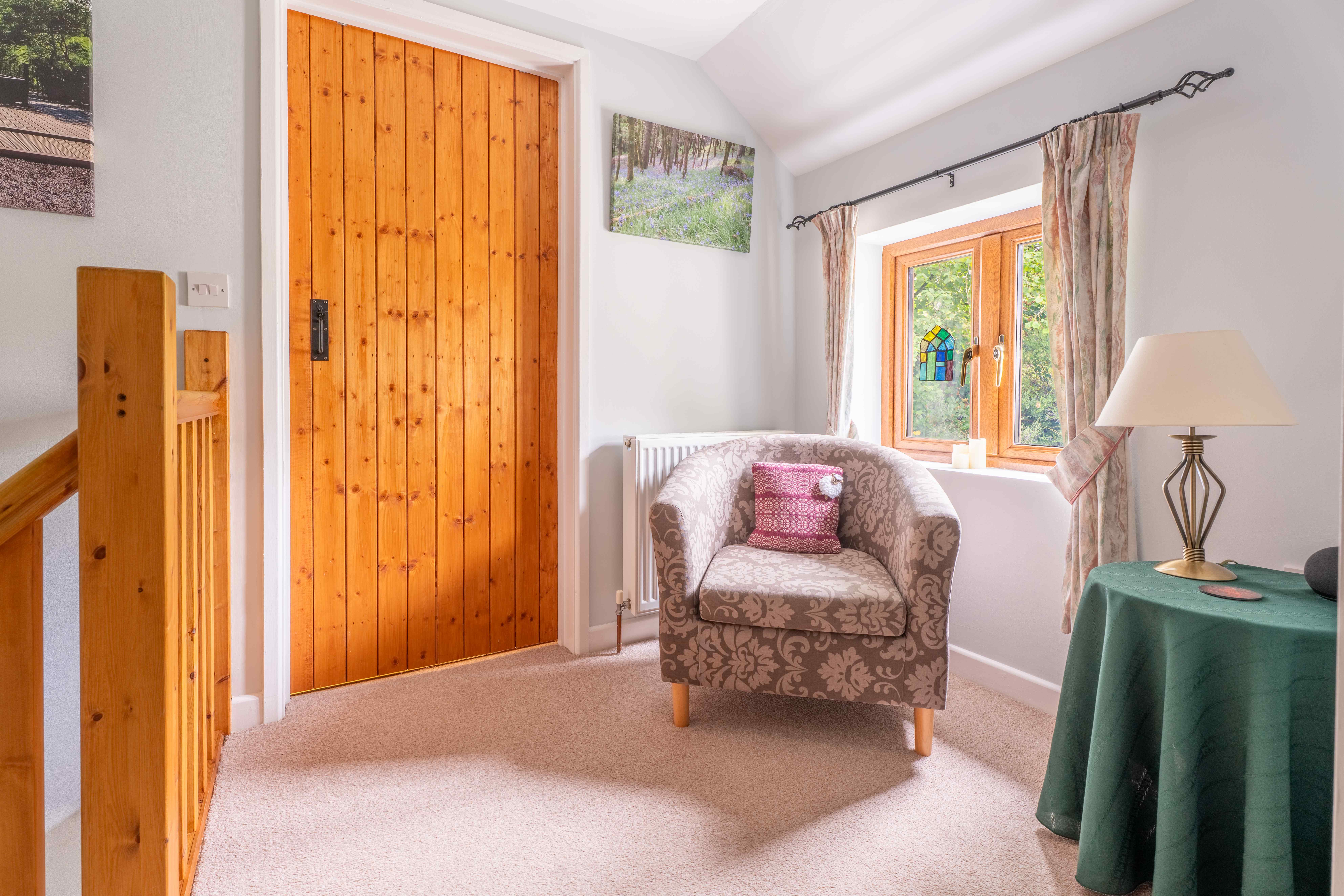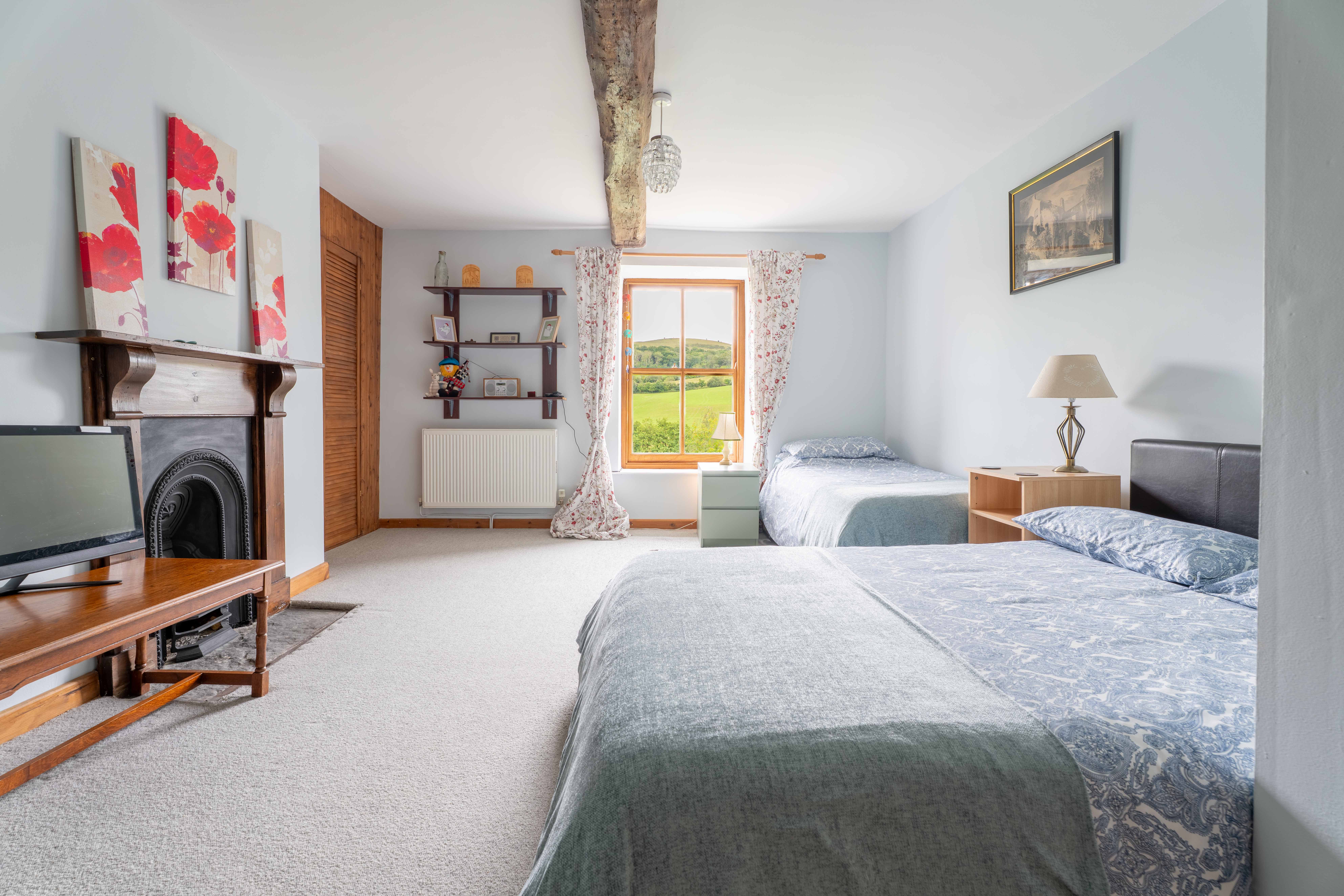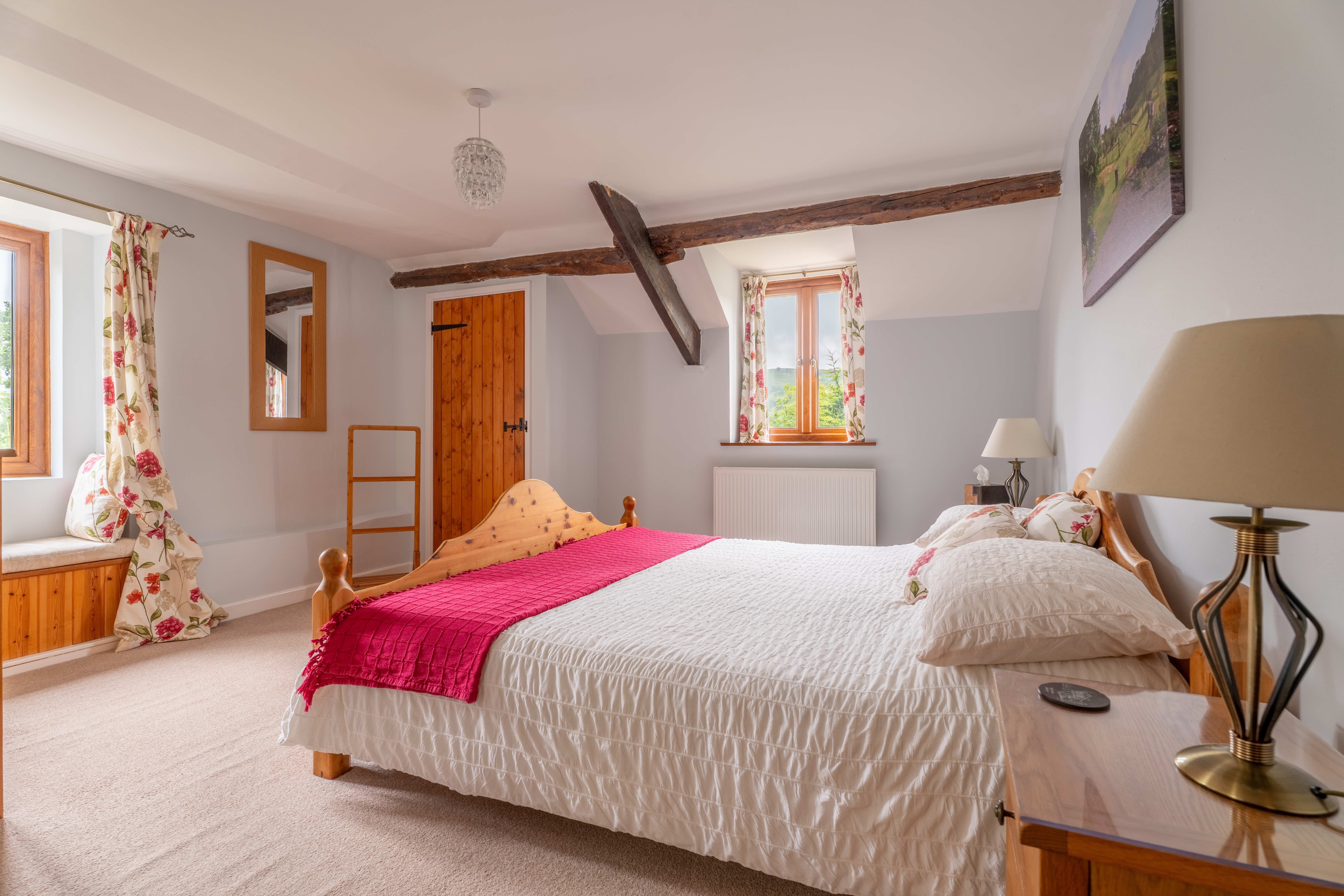 Housing a super king size bed. Large built in wardrobe. Dual aspect widows, exposed beams, window seat. Amazing views across the valley.