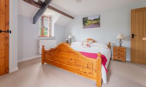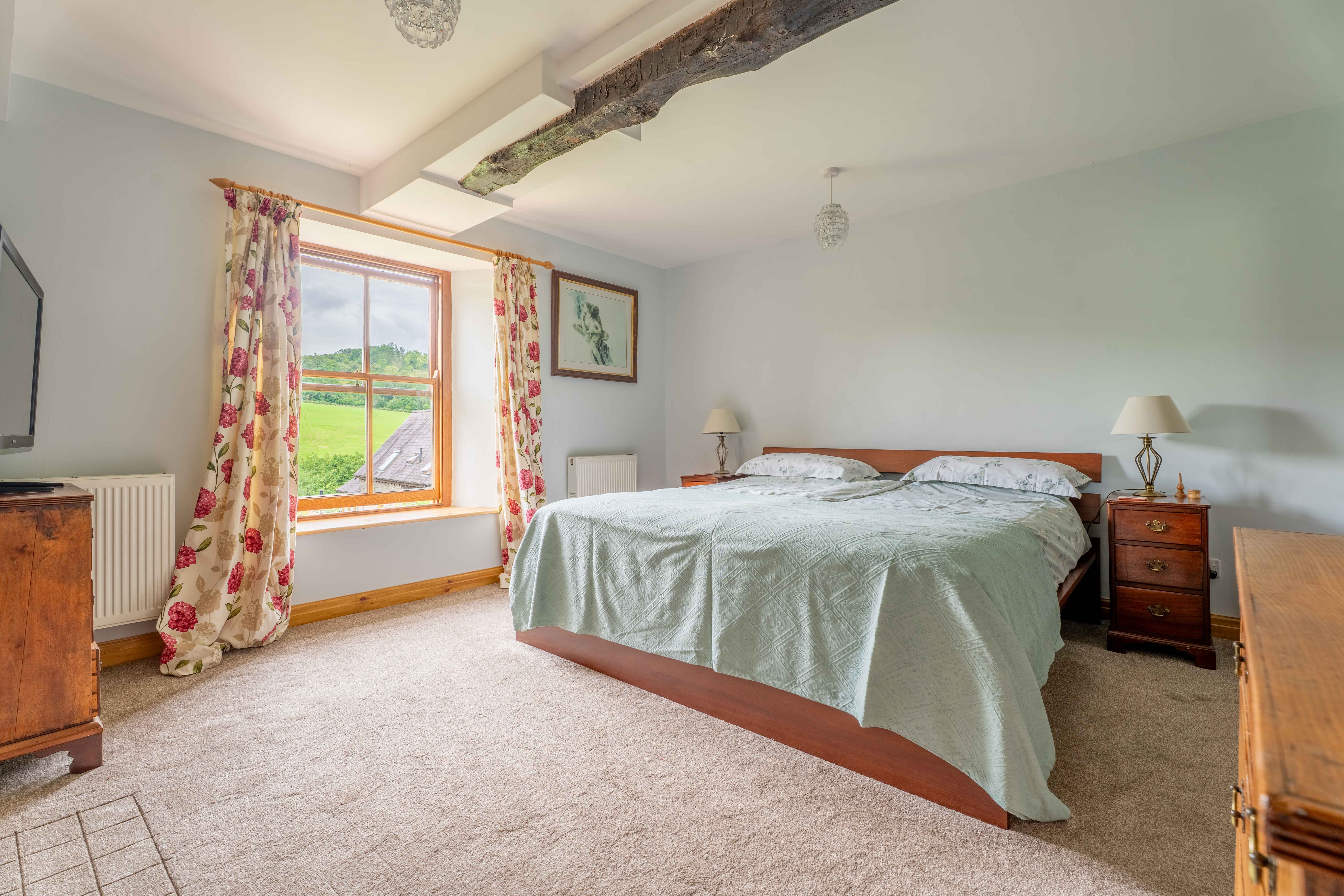 Currently housing super king size bed, large built in wardrobe, exposed beams, window offering amazing views across the valley.