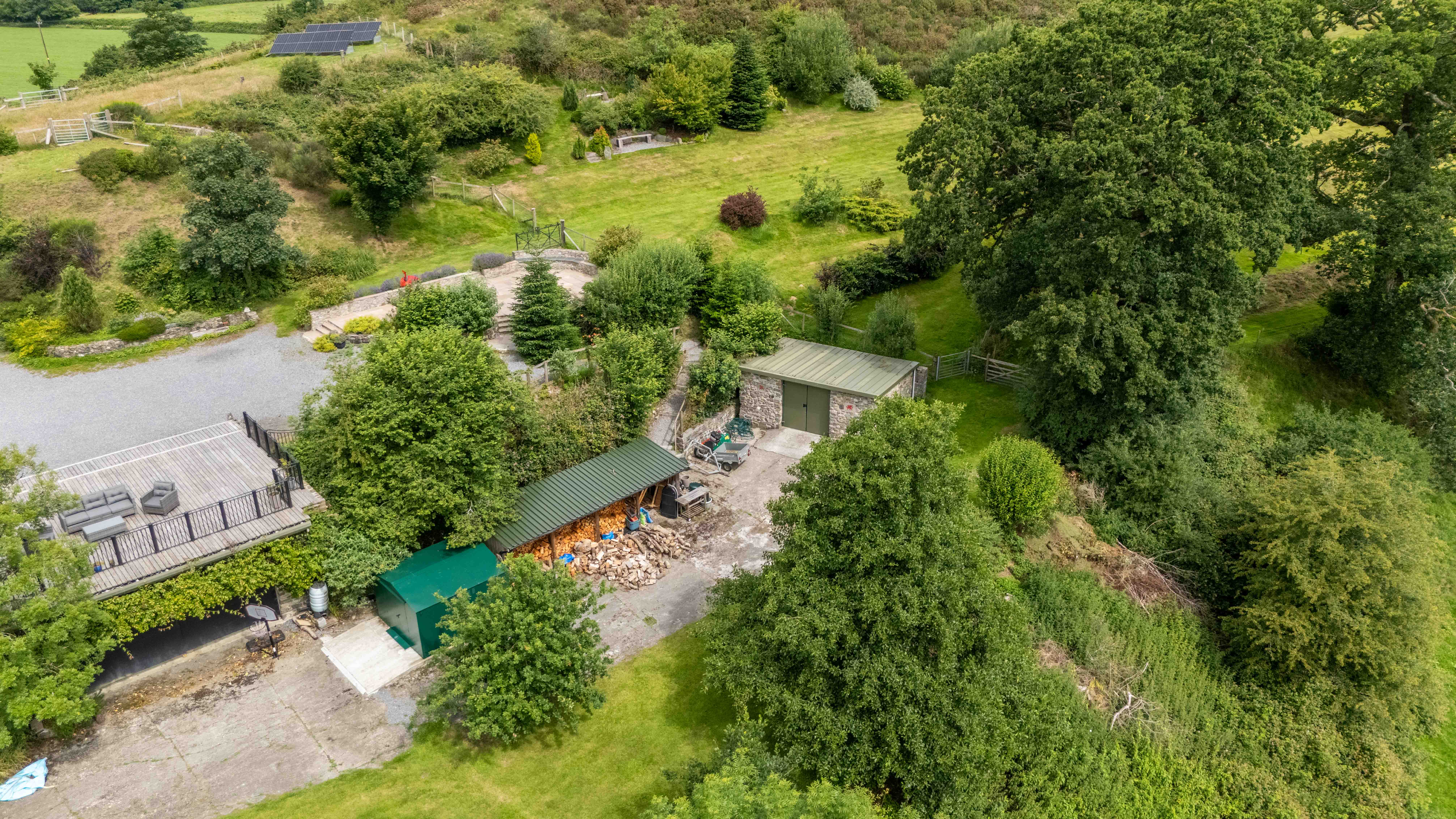 - Stone storage building, Wood store, EV charging point, large metal shed for storage. Ample parking overlooking the valley.