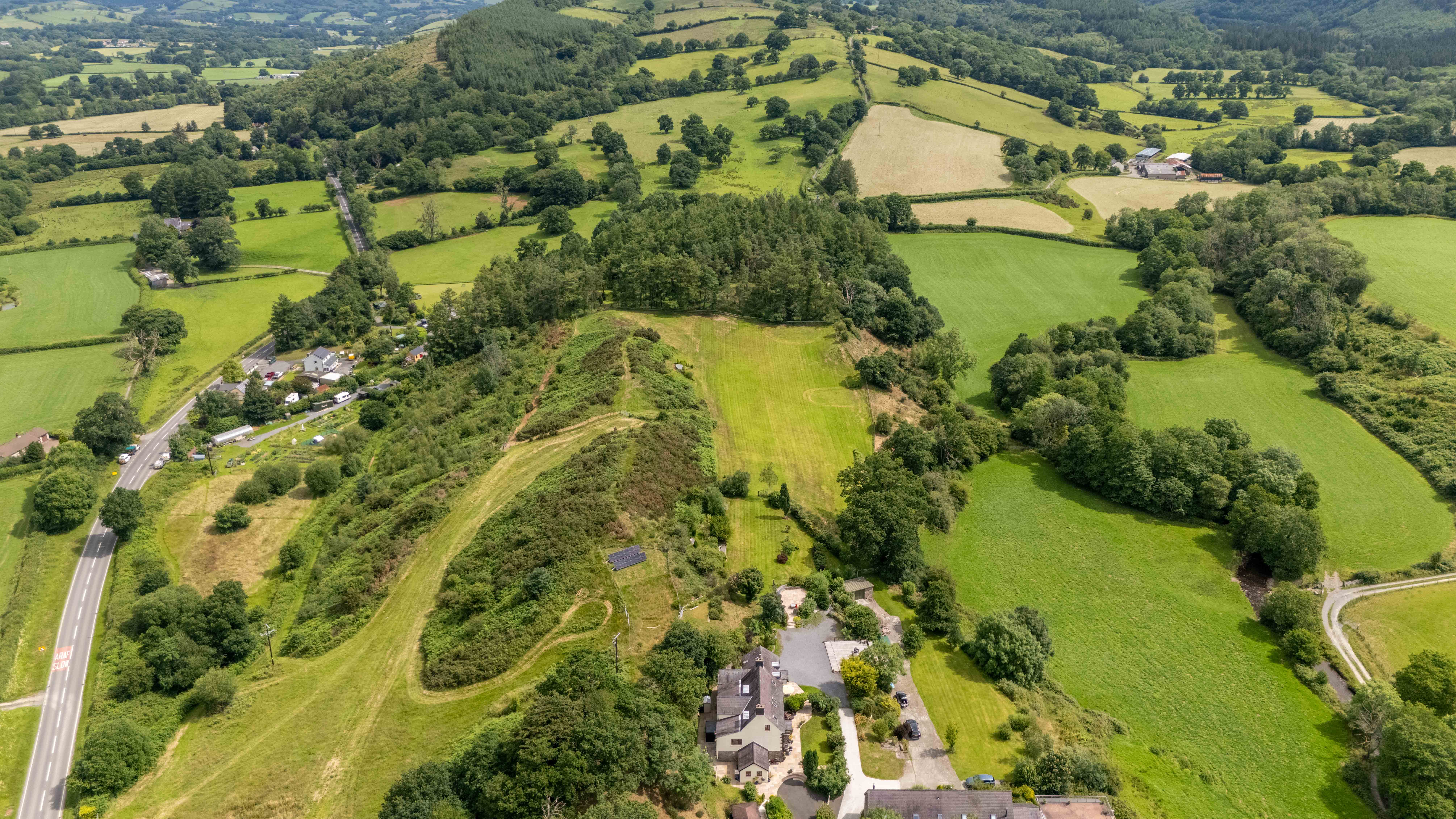 Within the 18 acres; a section for ‘games’ currently offering a shooting range, archery, an ‘agricultural’ 4 hole pitch and putt golf course and not forgetting croquet on the lawn, with practical outbuildings including secure stone shed, wood store, large storage metal shed and three car garage (currently utilised as a games room). There’s ample parking overlooking the valley, inviting you to explore and enjoy, as well as an orchard and a currently unused field ripe for further planting, grazing, outbuildings or camping/glamping business STP.