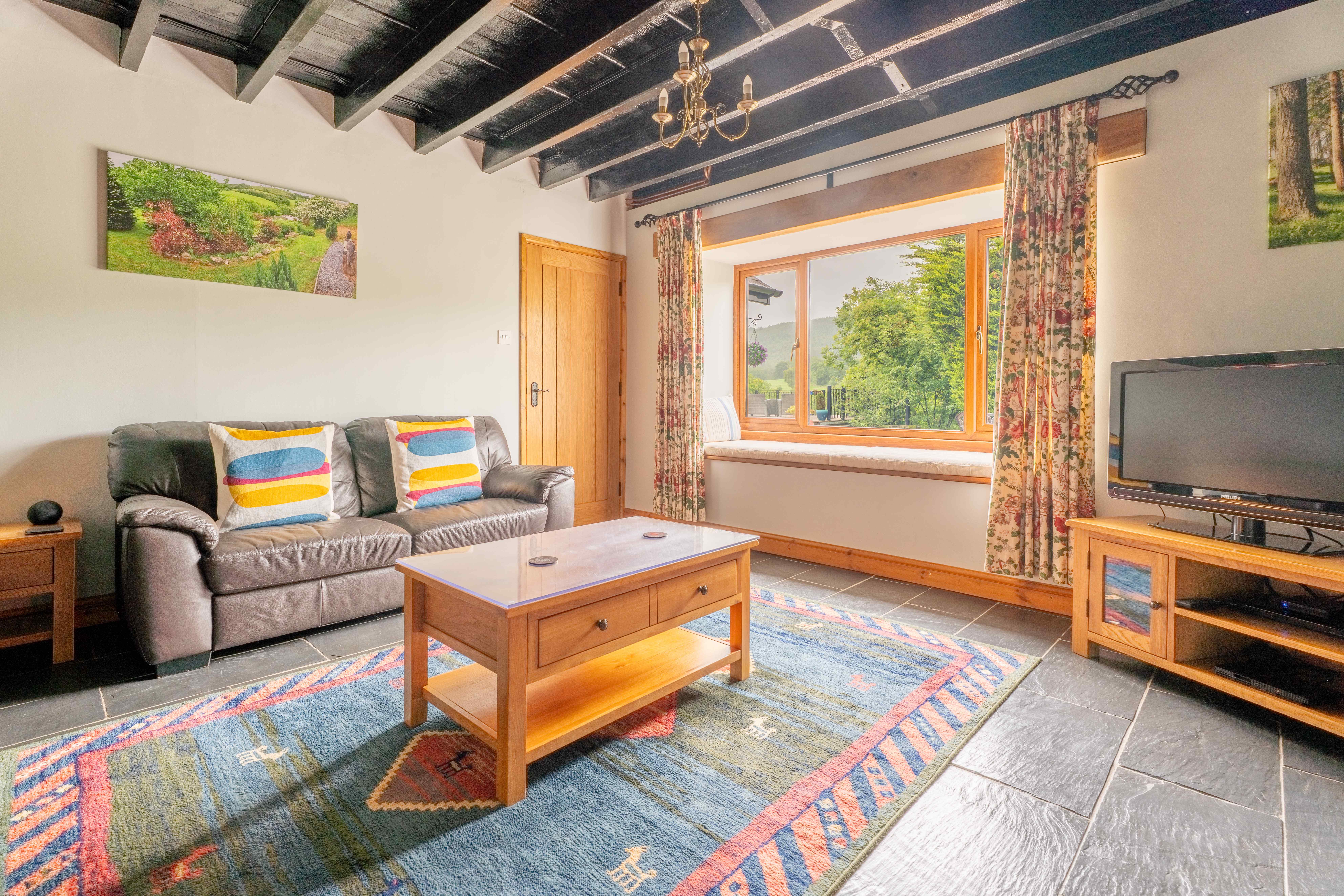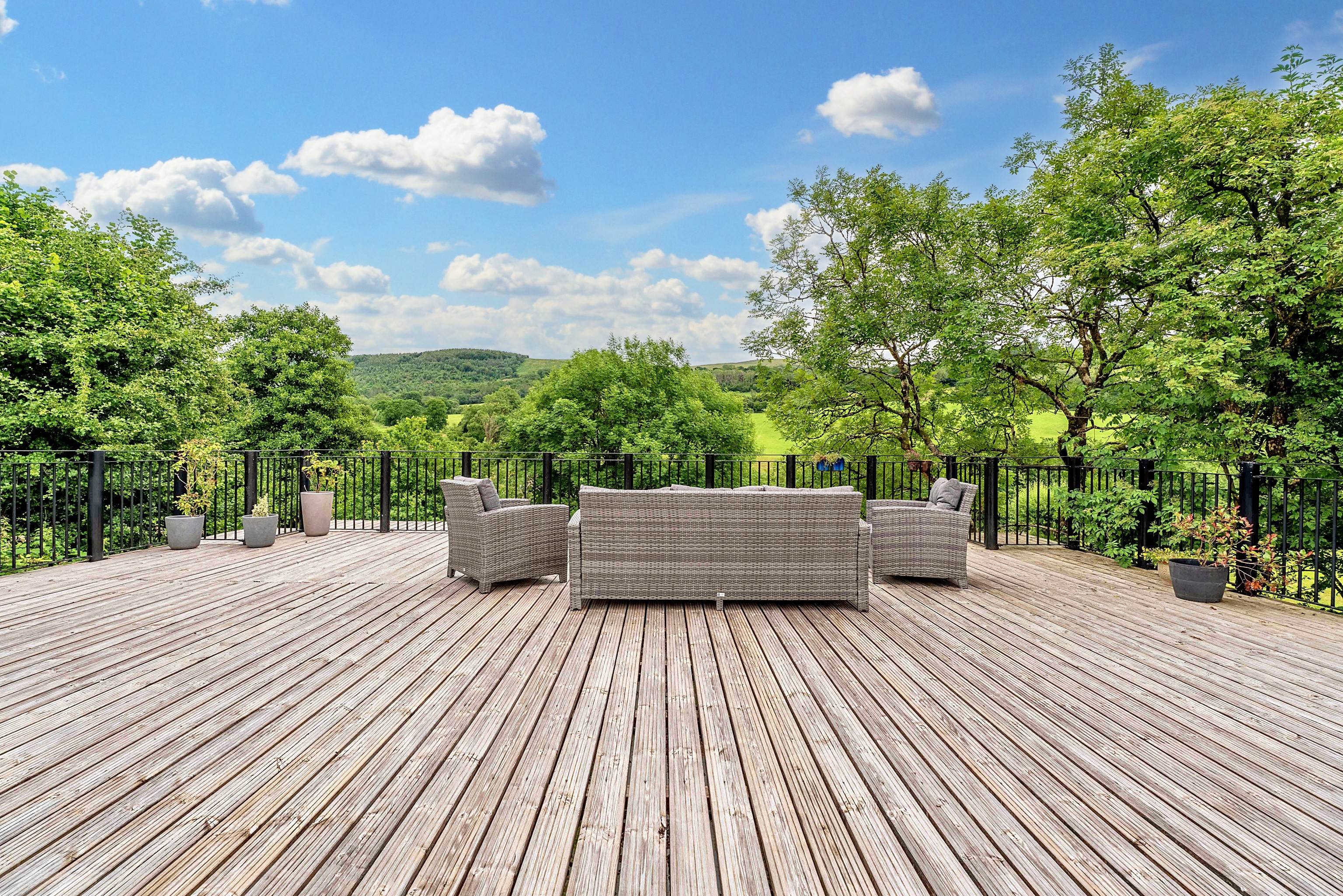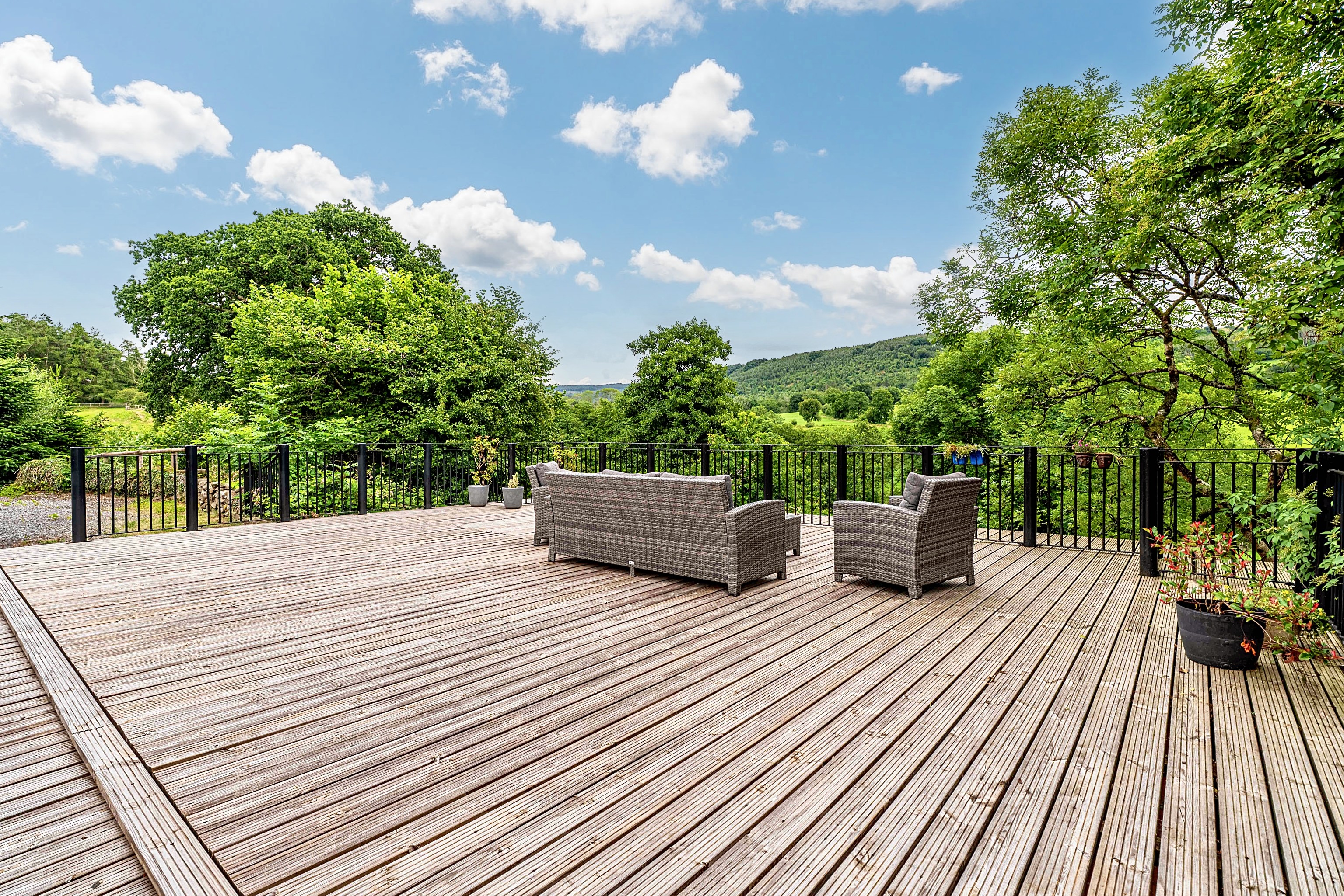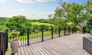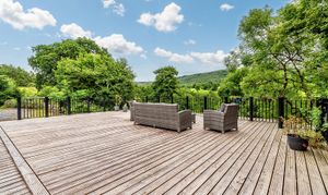 Two stunning terraces invite you to relax and enjoy; the decked terrace with splendid views over the valley and meandering river below offers a seating area, ideal for entertaining, eating Alfresco and socialising.