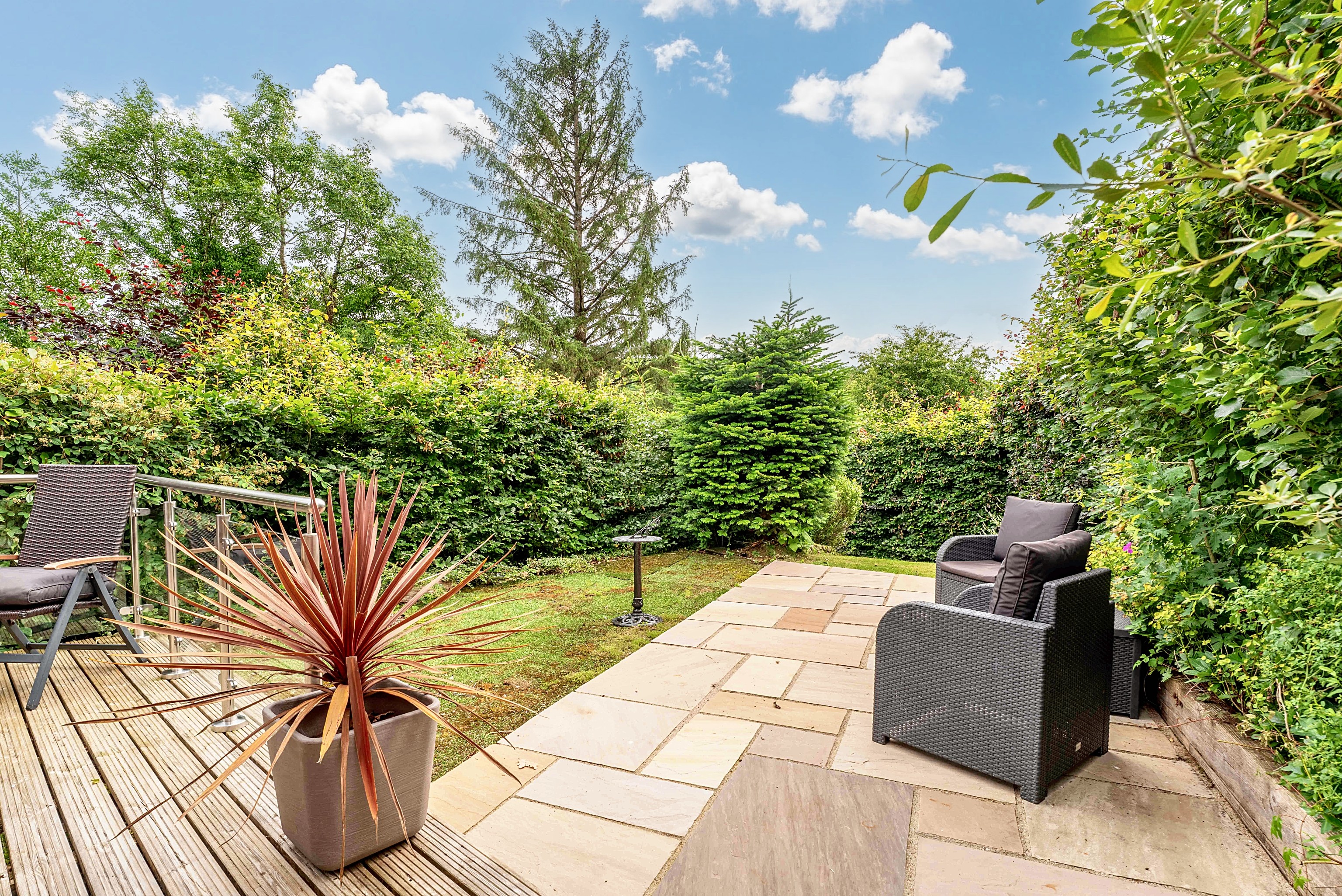 The stunning stone and slate terrace is surrounded by mature planting and invites you to relax and unwind whilst being warmed by the fire pit enjoying a glass of your favourite tipple whilst immersing yourself in the dark skies and star gazing in wonder.