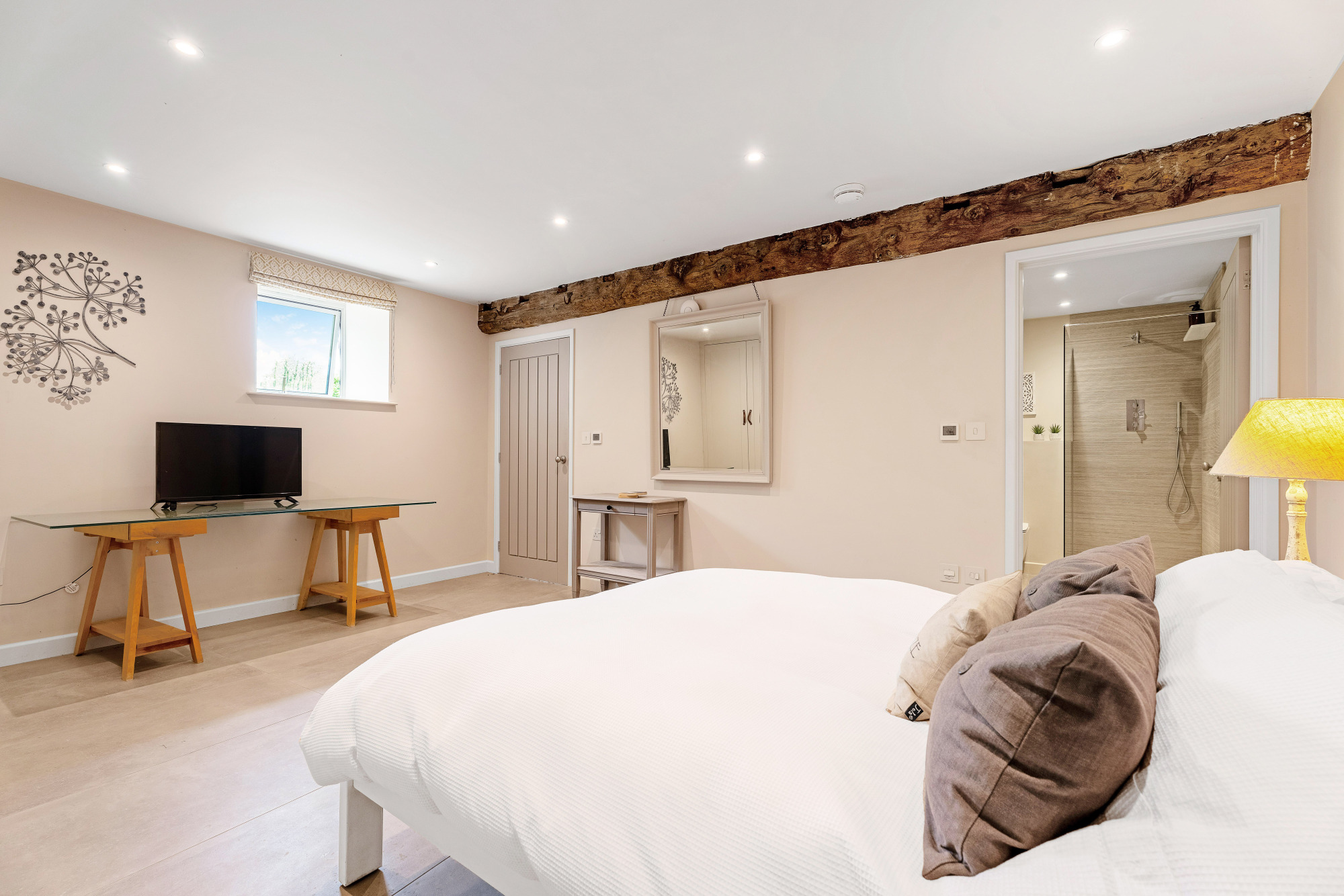 A sleek en suite shower room and discreet tea and coffee facilities make this an ideal guest suite or income-generating holiday let, perfect for visitors seeking rural escapism with all the comforts of a boutique break with views out over the six acres of private countryside.