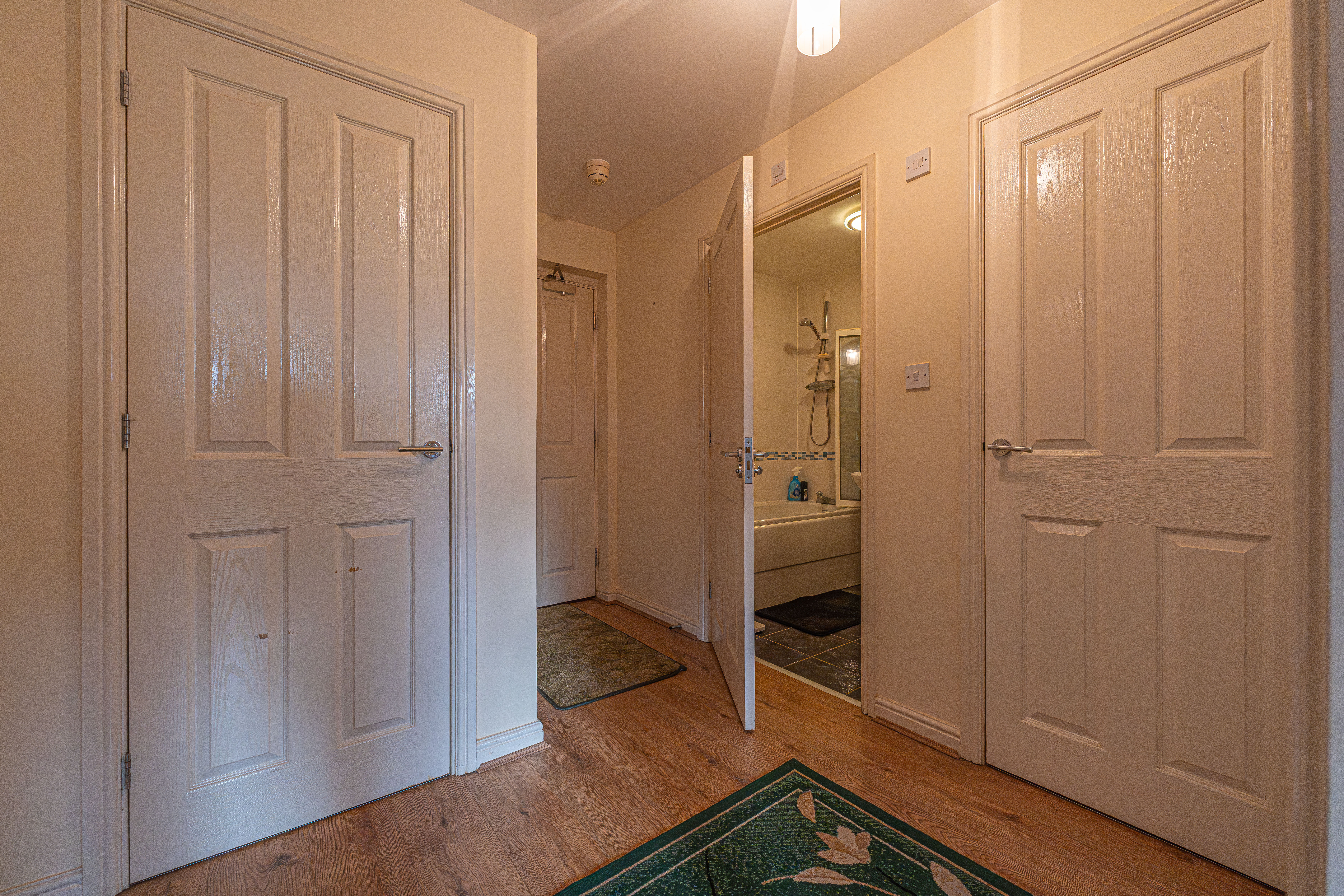 French doors from the lounge also provide an access point to the communal gardens at the rear of the building, offering a great space to relax in the fresh air, and boasting views of the neighbouring George Street Bridge. Additional benefits include dedicated off-road parking at the front of the house, further contributing to the property’s exceptional convenience and appeal for first time buyers.