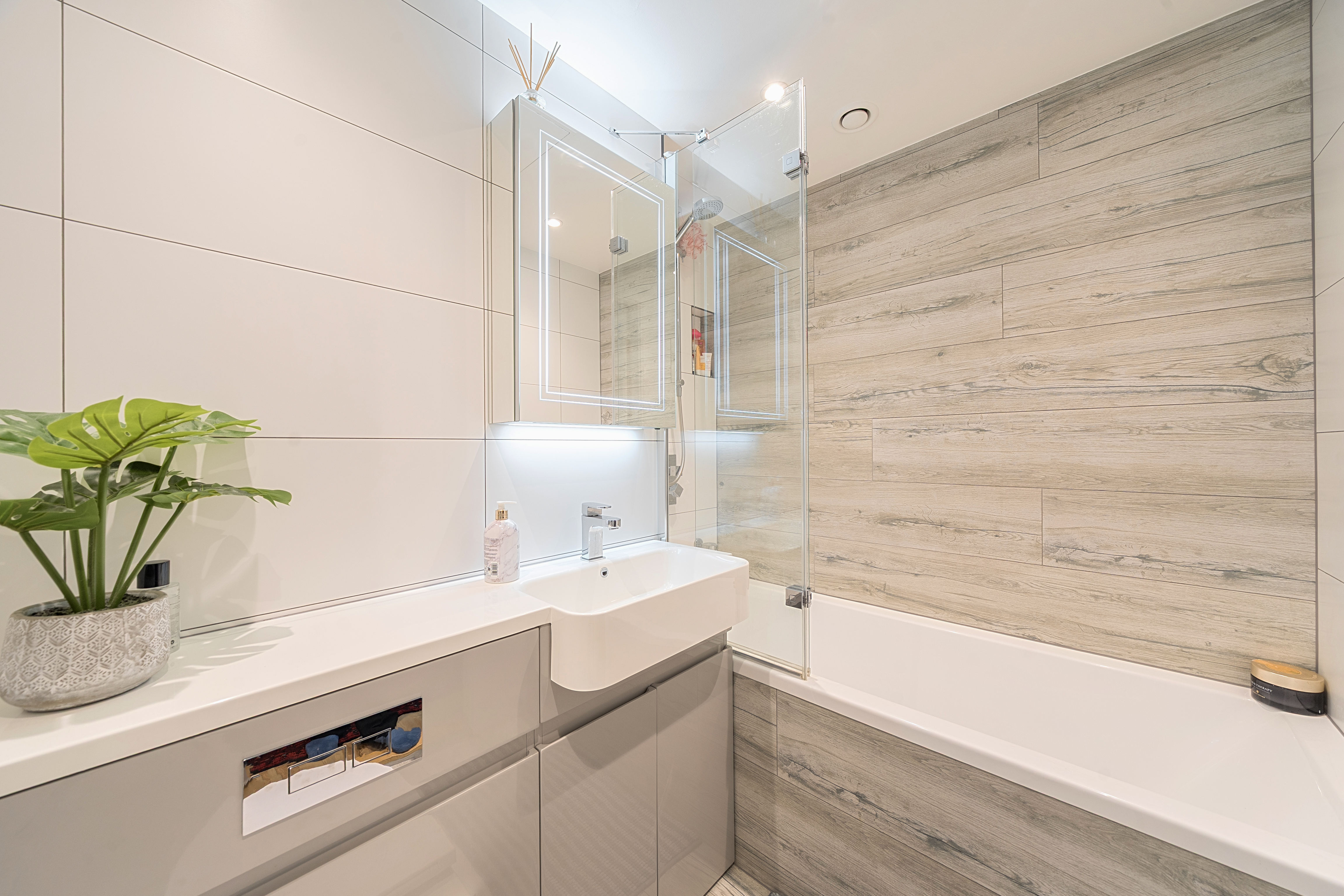 - Solid wood flooring & LED lighting throughout