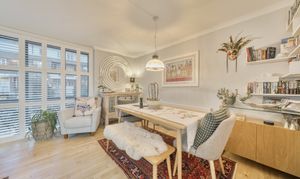 This beautifully presented three-bedroom, two-bathroom maisonette offers an impressive 1,116 sq ft of thoughtfully designed living space and is set within a peaceful residential pocket moments from the Thames.