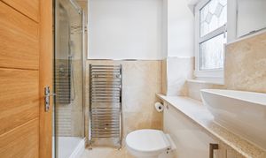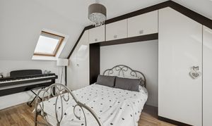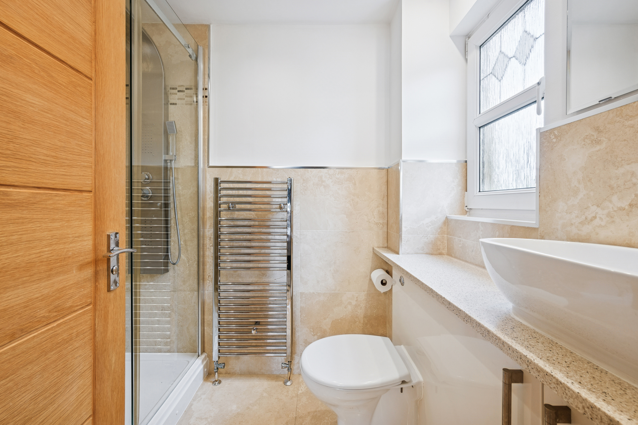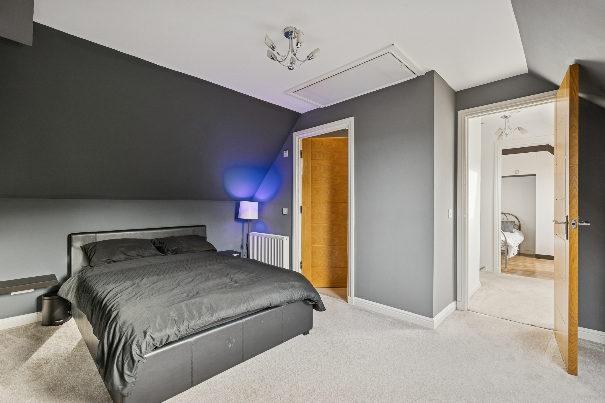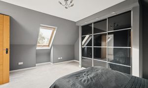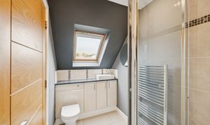 The top floor of the property hosts two additional double bedrooms, both of impressive size and flooded with natural light from skylights. Bedroom two includes a fitted wardrobe and its own en-suite shower room, making it ideal for guests, older children, or multi-generational living.