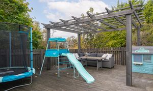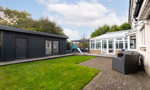 Externally, the private west-facing garden provides a serene outdoor retreat. It features decking, a small lawn, and a tree-lined backdrop that ensures complete privacy. The recently built summer house (2025) offers additional flexibility, fully powered, with a separate storage section and patio doors, perfect for use as a home office, gym, studio, or relaxation space.