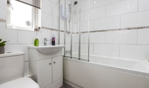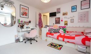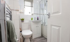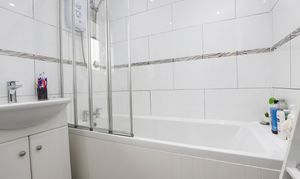 Upstairs, two generous double bedrooms offer restful retreats, each with ample space for personal touches and storage, while the family bathroom is elegantly appointed with a three-piece suite and a shower over the bath, ensuring both comfort and functionality for busy mornings or leisurely soaks.