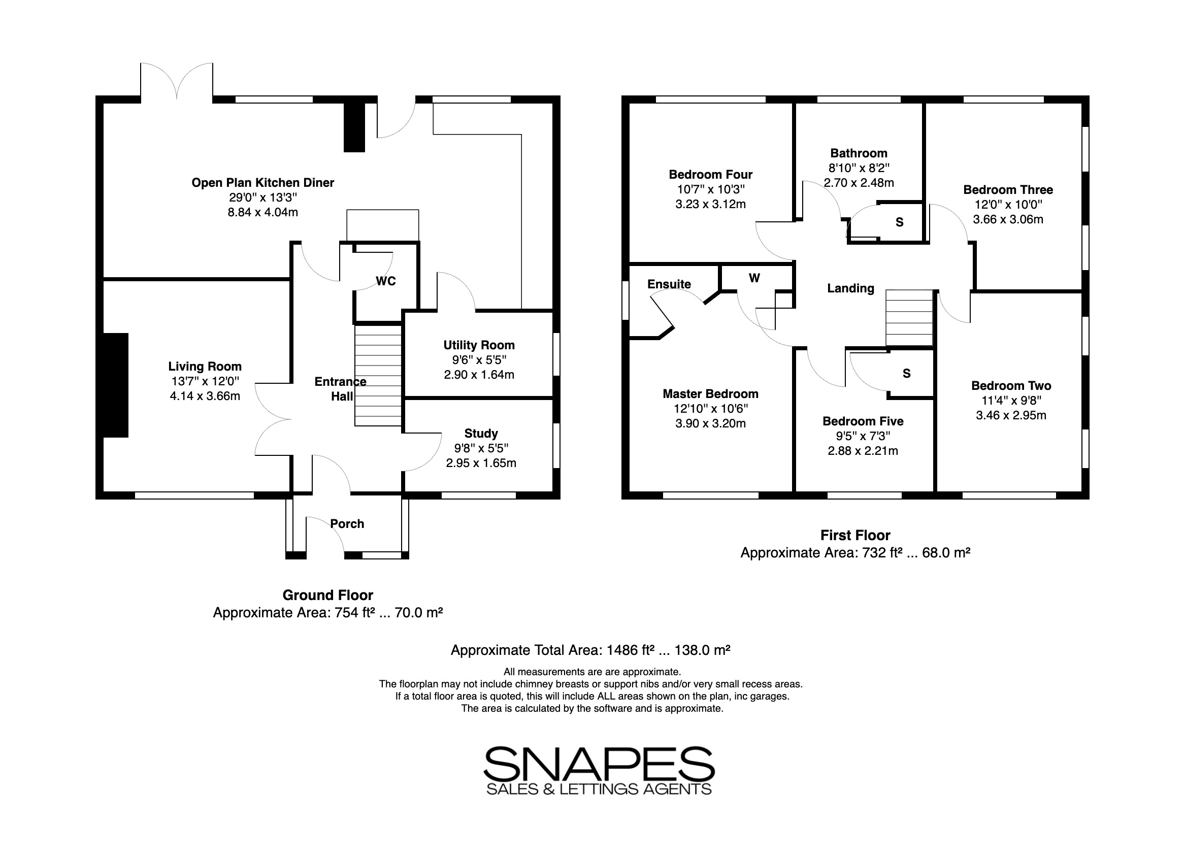To the first floor, a spacious landing leads to five well-proportioned bedrooms. The master bedroom benefits from its own ensuite shower room, while the remaining bedrooms are served by a modern family bathroom. The layout offers flexibility for families of all sizes, with potential for guest rooms, home offices, or dressing rooms.