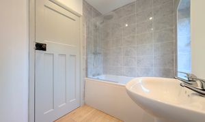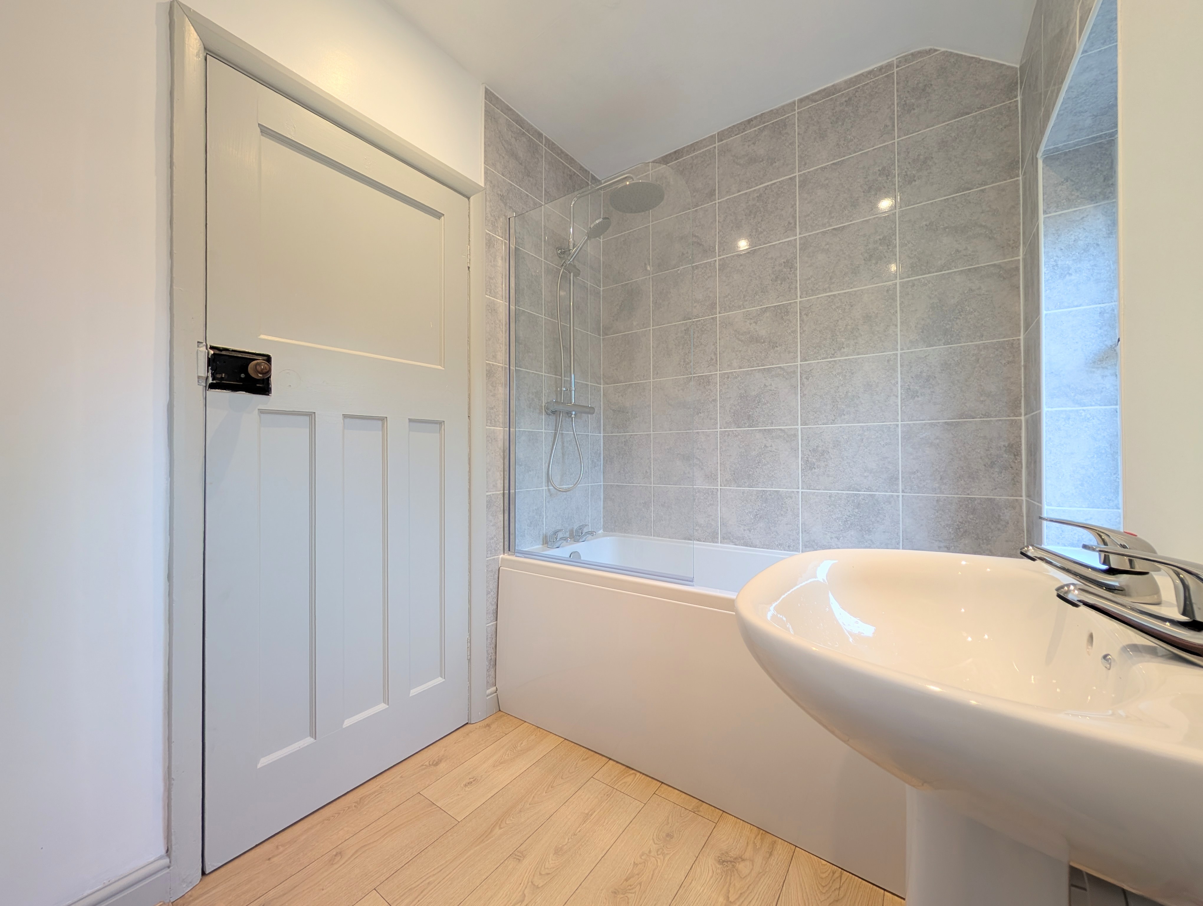Upon entry, you are welcomed into a bright hallway with stairs leading to the first-floor landing. From here, you are drawn into a spacious living room featuring a large window overlooking the front gardens. From the living room is a generously sized kitchen diner, fitted with a range of base and wall units, an electric cooker, and a door to the rear garden. The ground floor also benefits from a pantry and a recently upgraded family bathroom, complete with a contemporary white suite and a shower over the bath.