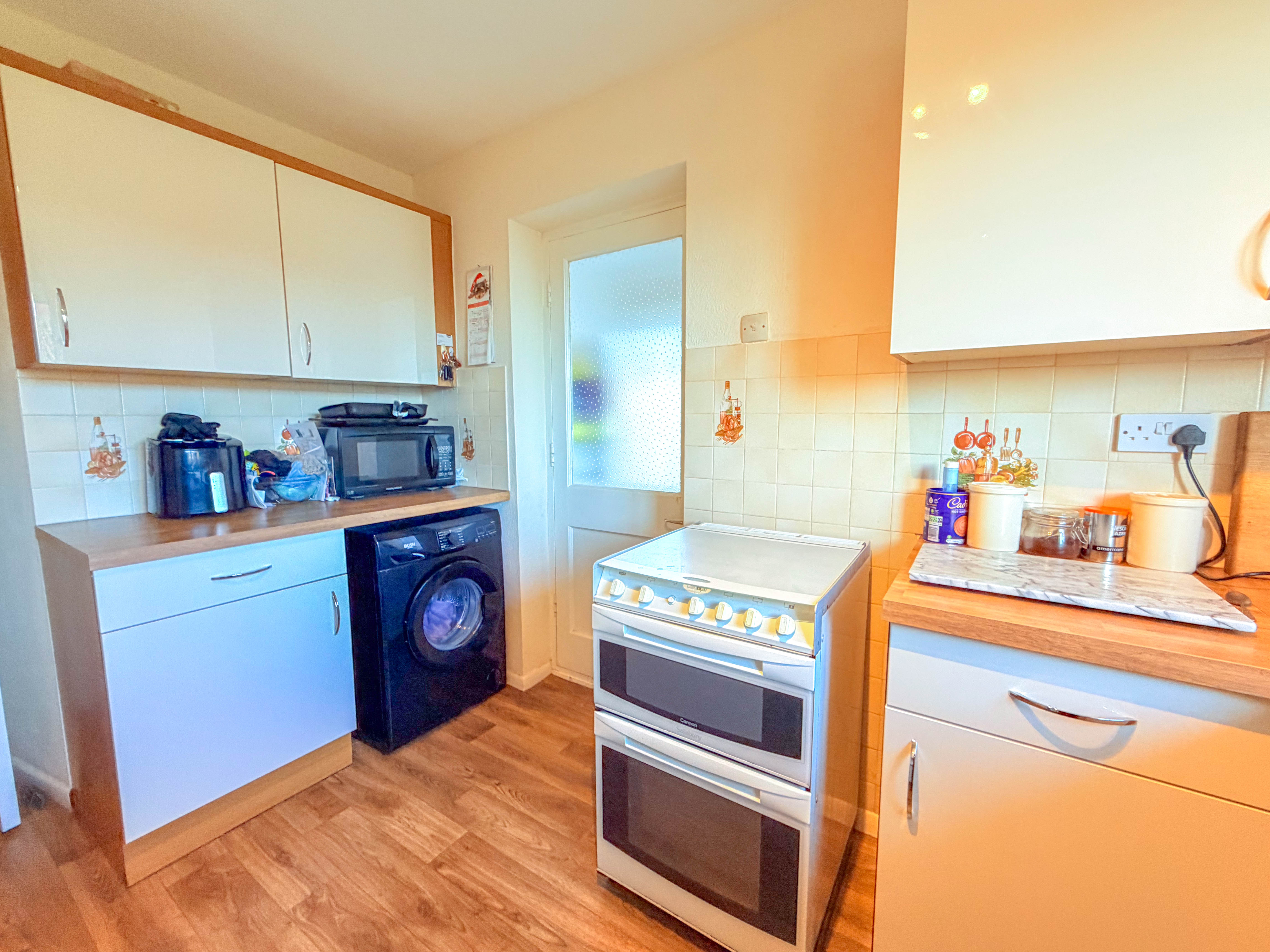 Upon entering through the porch, you are welcomed into a well-laid-out entrance hall. To the rear sits the cosy lounge, featuring double doors that open directly onto the garden, creating a bright and inviting space. The kitchen is conveniently positioned off the lounge and is fitted with a range of units complemented by contrasting work surfaces.