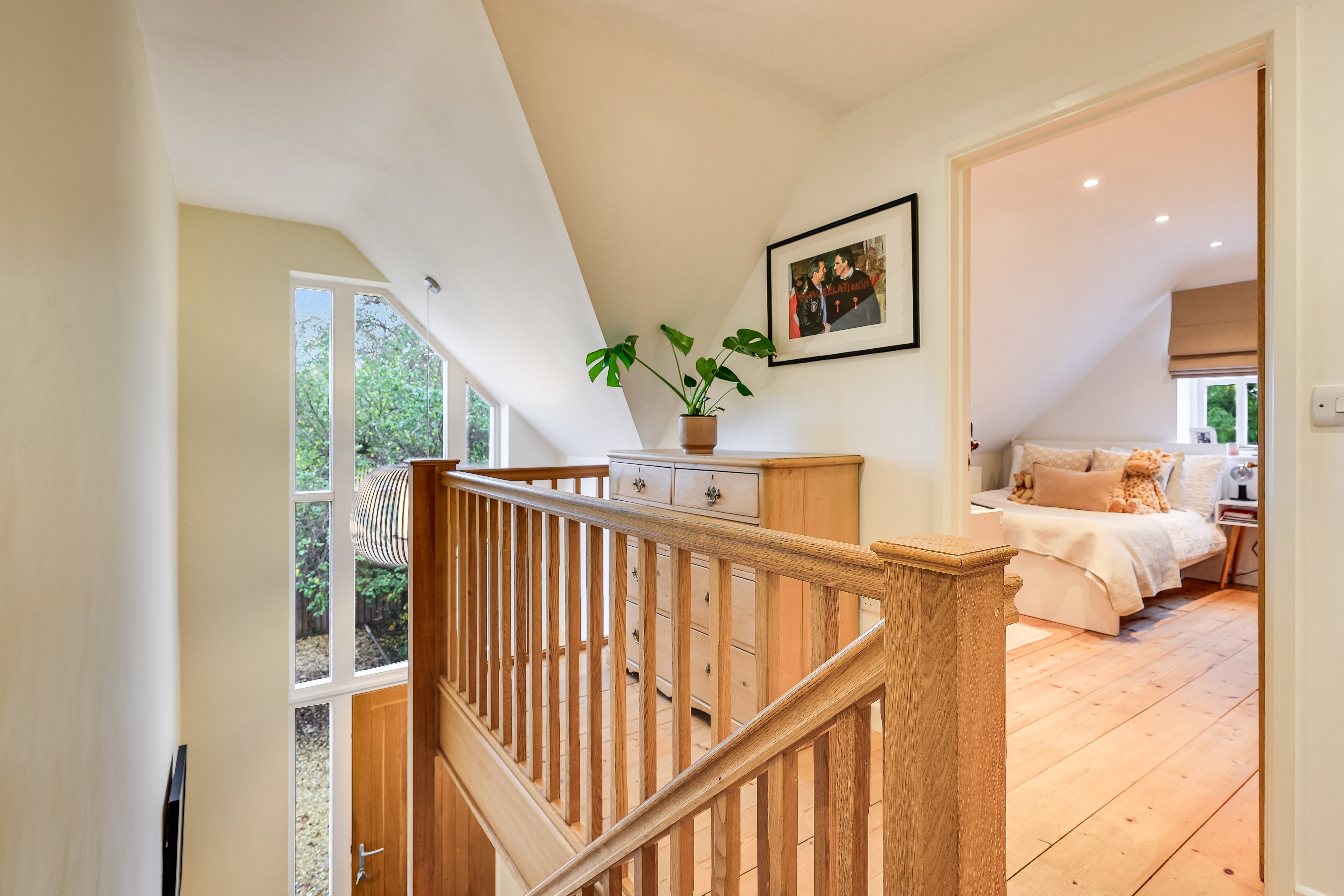The welcoming hallway sets the scene of this stunning property with its open tread staircase leading to the galleried landing, both framed by the beautiful feature picture window, a fabulous and individual attribute.