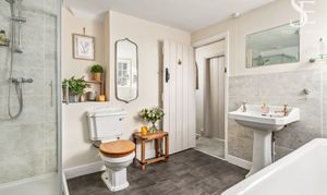 Almost a self-contained floor, step forward from the second-floor landing and into the bathroom, where a rolltop bath is on hand for soothing soaks, alongside separate shower, wash basin and WC.