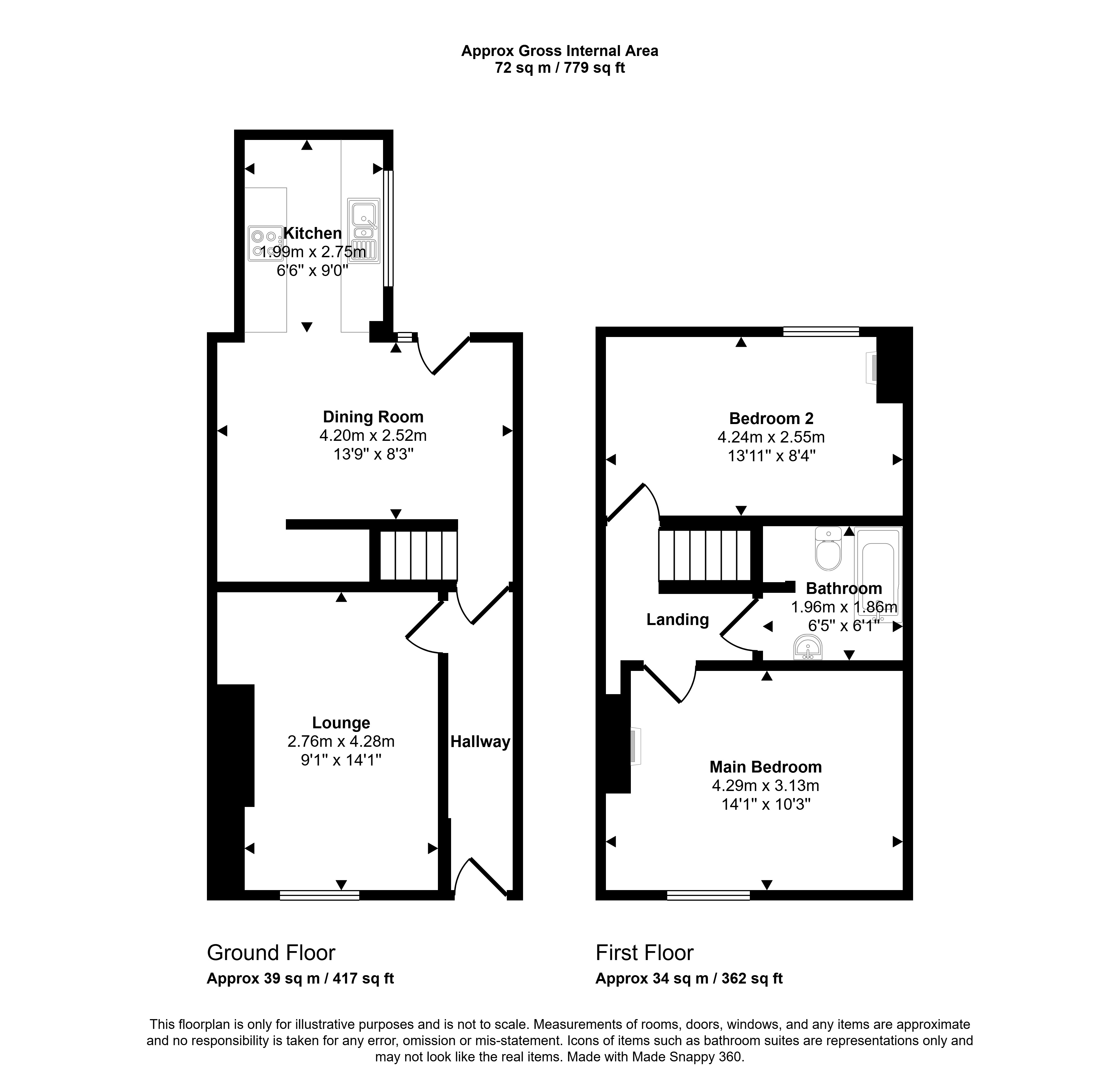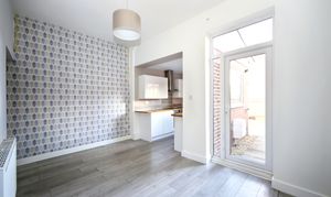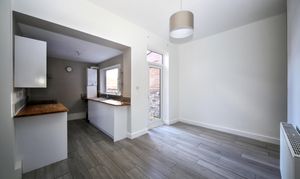 The home benefits from street parking and a small front garden, and internally comprises an entrance hall leading into a cosy lounge with feature hearth, opening through to a dining room which flows into the kitchen, creating a practical and sociable living space.