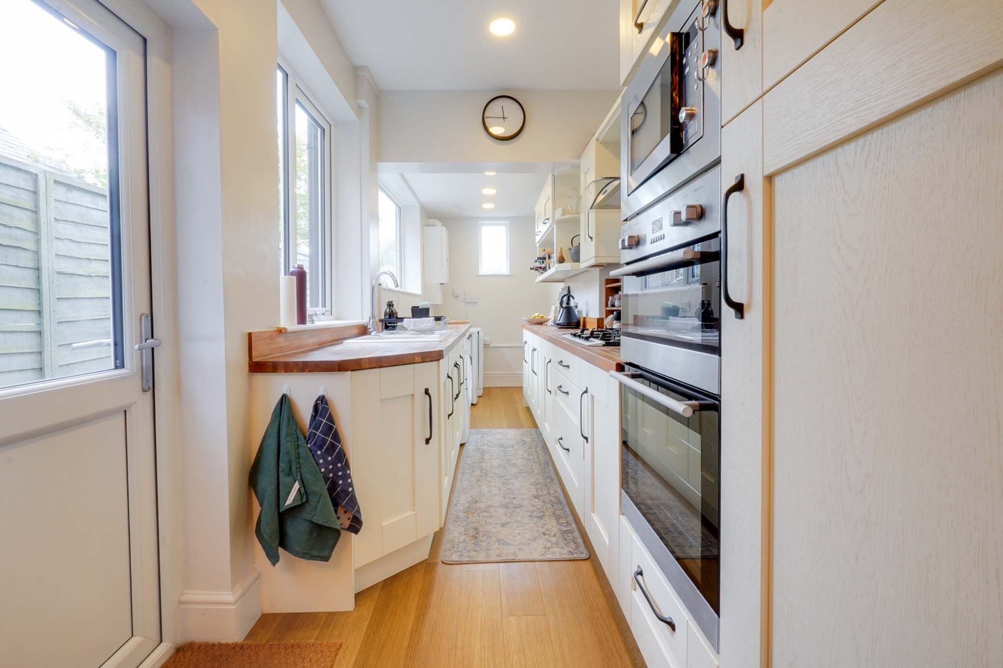 To the rear, the property enjoys a low-maintenance garden, thoughtfully designed for versatile use – perfect for both relaxing and entertaining. Additional benefits include a driveway and garage to the rear, accessed via Blunts Lane.