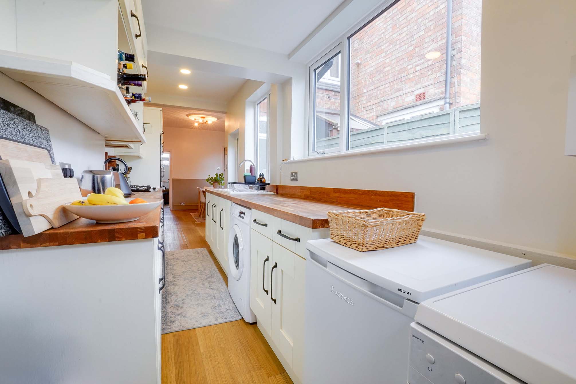 - Kitchen with White Goods inc Washing Machine, Cooker, Fridge, Freezer, Dishwasher and Microwave