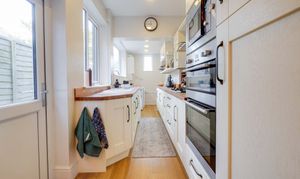 The garage is located to the rear of the property on Cross Street via Blunts Lane. Please note that parking within the garage is subject to vehicle size. Prospective purchasers should ensure the dimensions are suitable for their vehicle before relying on it for parking purposes.