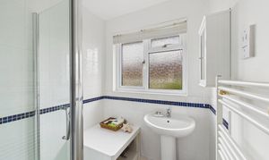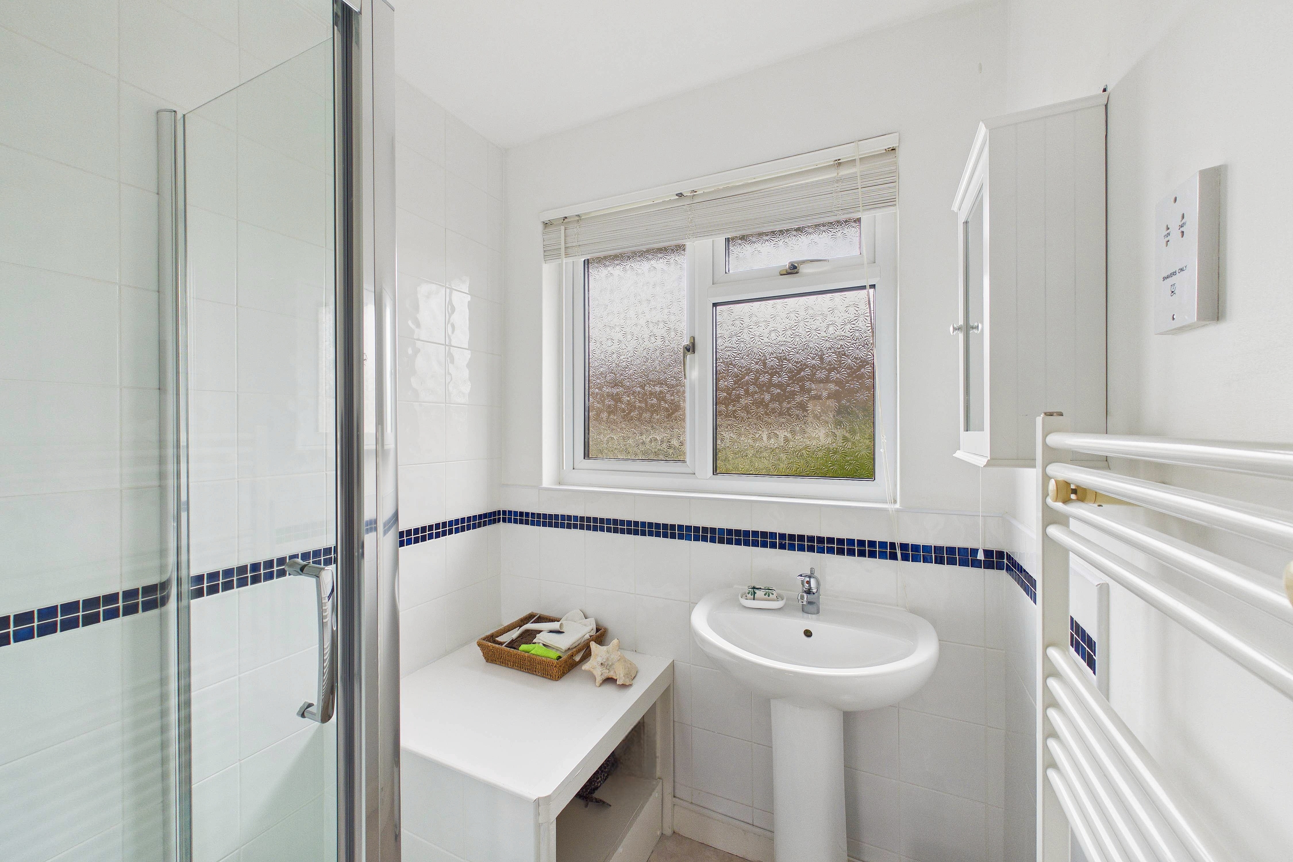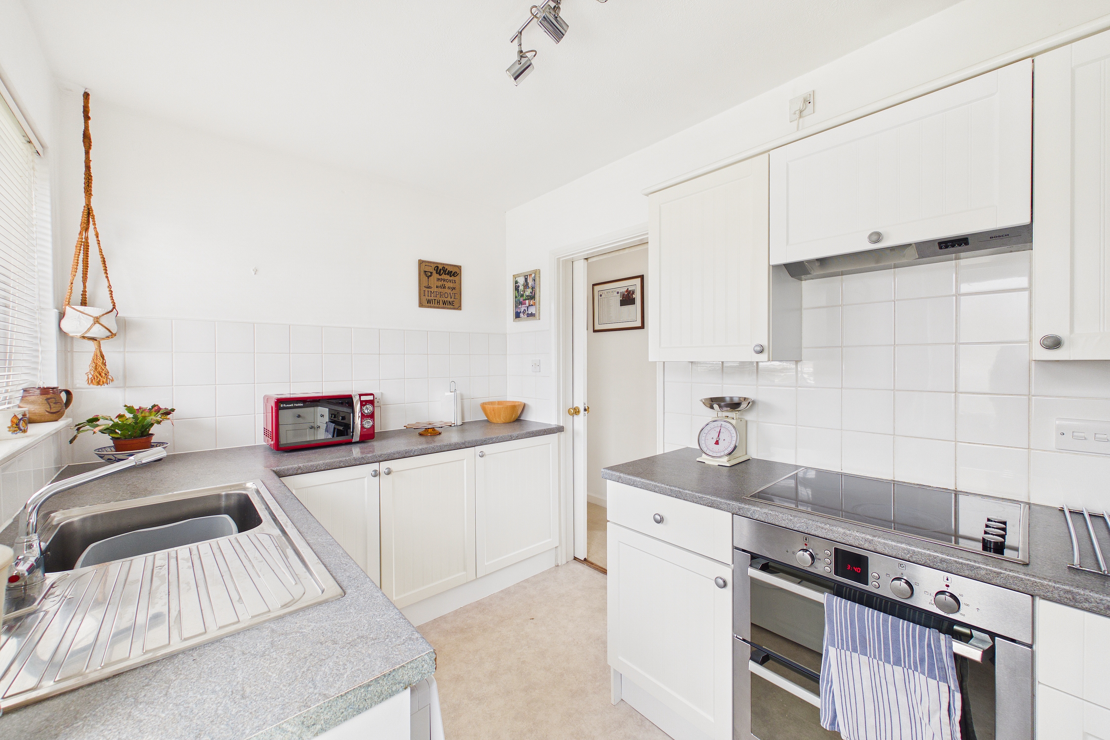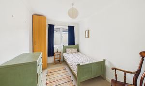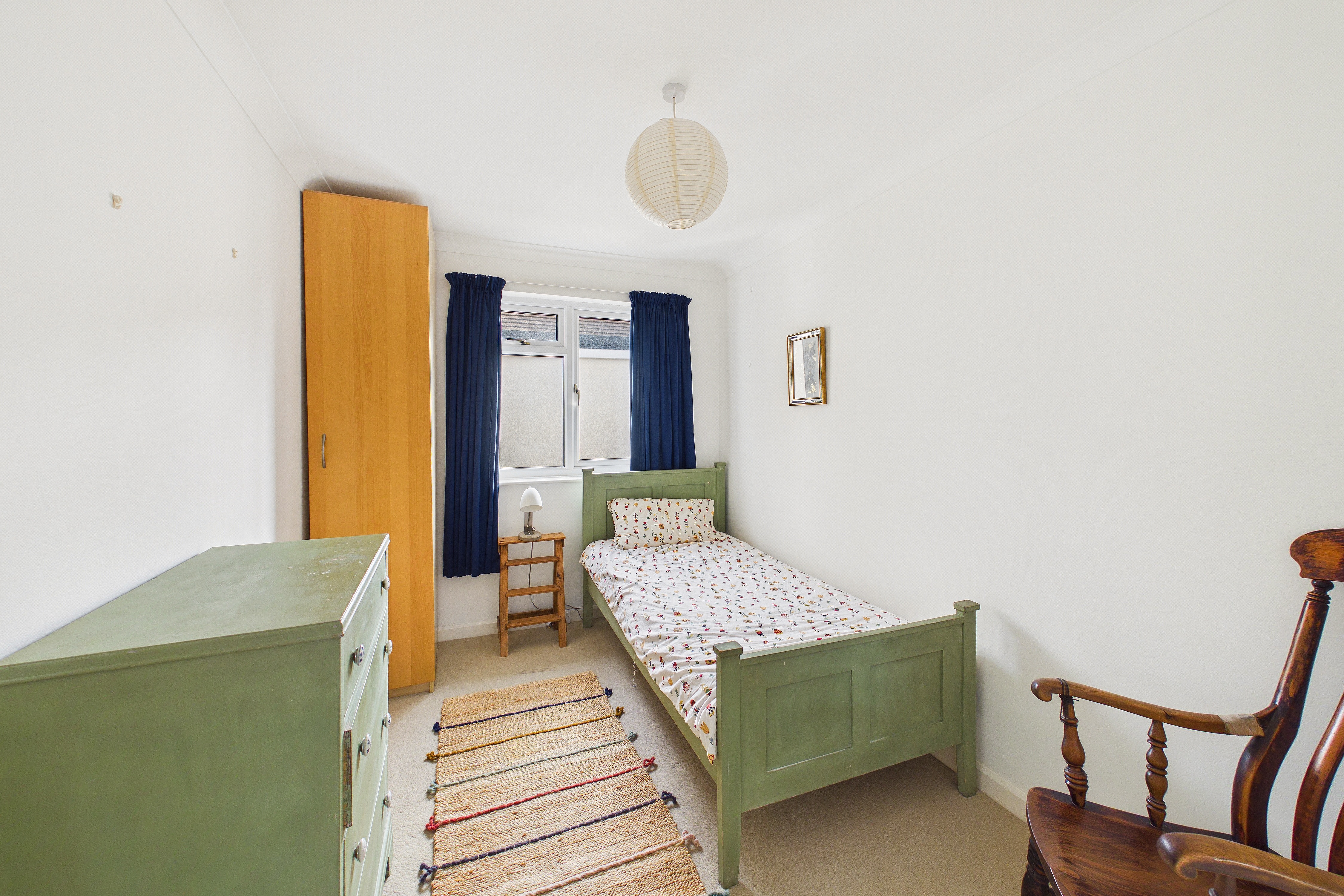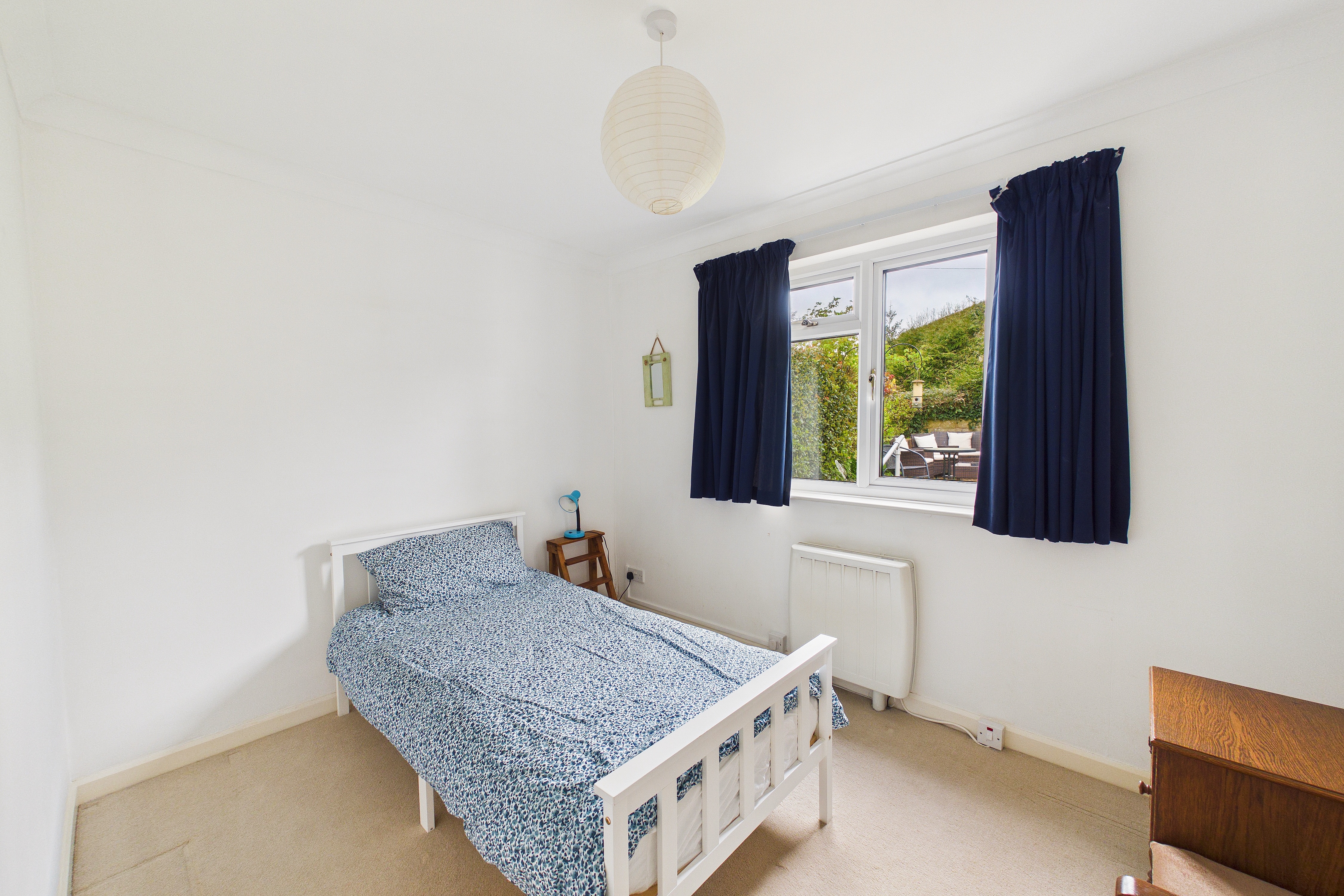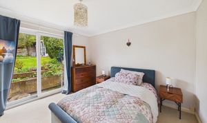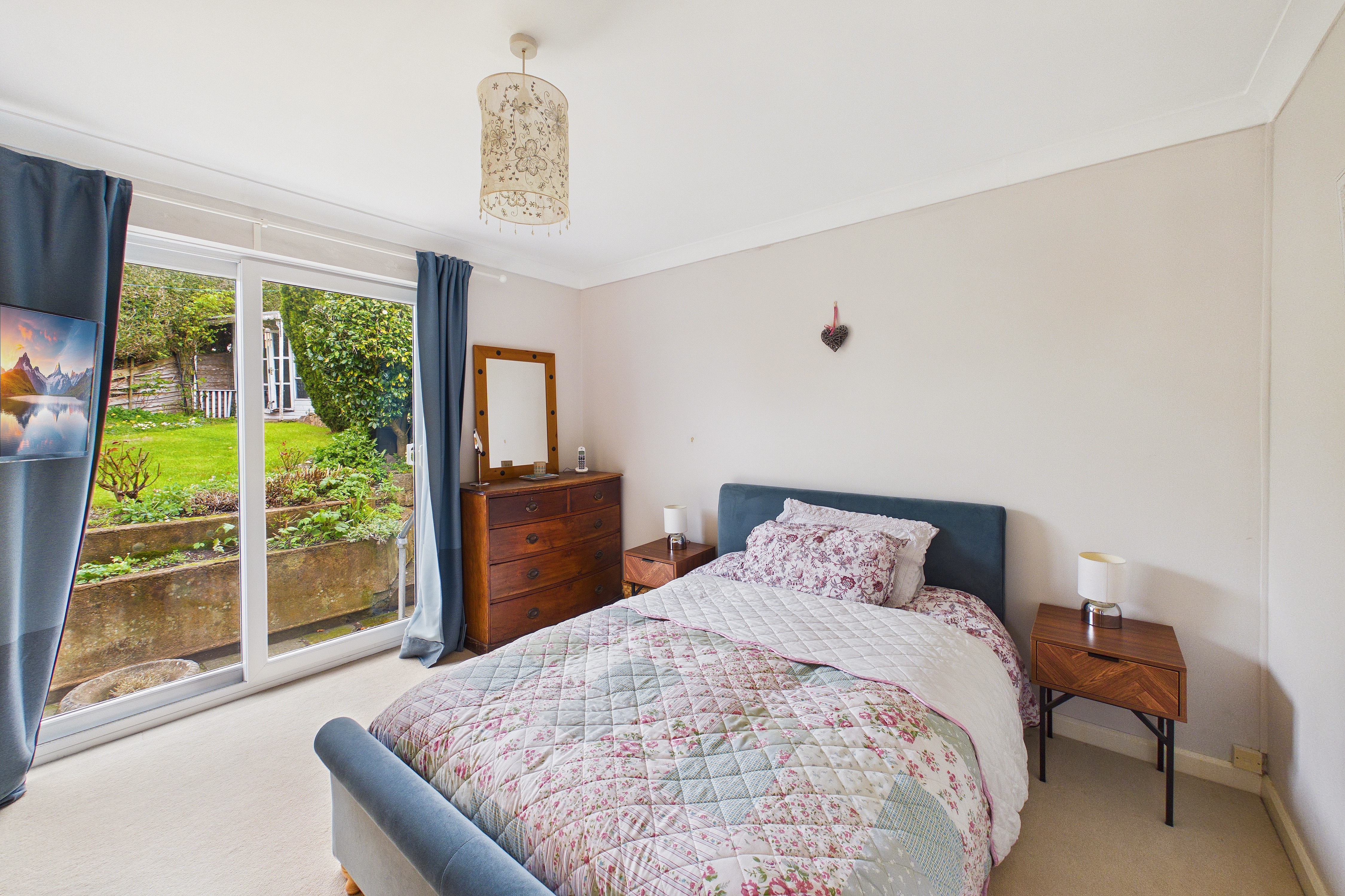 The property provides straightforward single-level accommodation, with three bedrooms in total—two doubles and a single. The main bedroom is a particularly bright room, with patio doors opening directly to the rear garden and a pleasant outlook over the outside space.