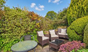 Outside, there are gardens to both the front and rear, established with mature shrubs, trees and flower borders, creating a settled and well-kept setting. Parking is available for two vehicles, and the property also benefits from a garage with useful outbuildings to the rear.
