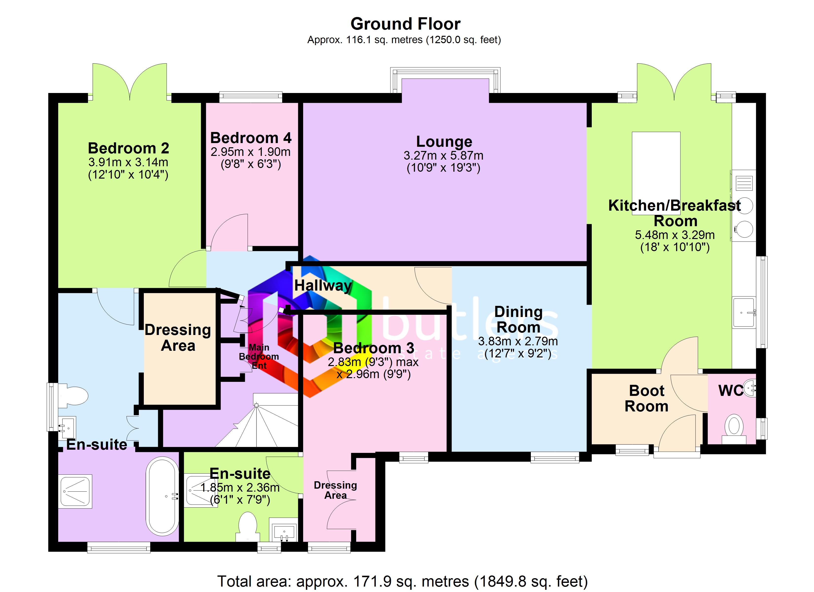 As you step inside, be mesmerised by the grandeur of the main bedroom suite, featuring a stunning glass staircase, a sumptuous freestanding bath, and a separate shower room. Two additional bedrooms come complete with their own dressing rooms, adding a touch of opulence to every-day living.