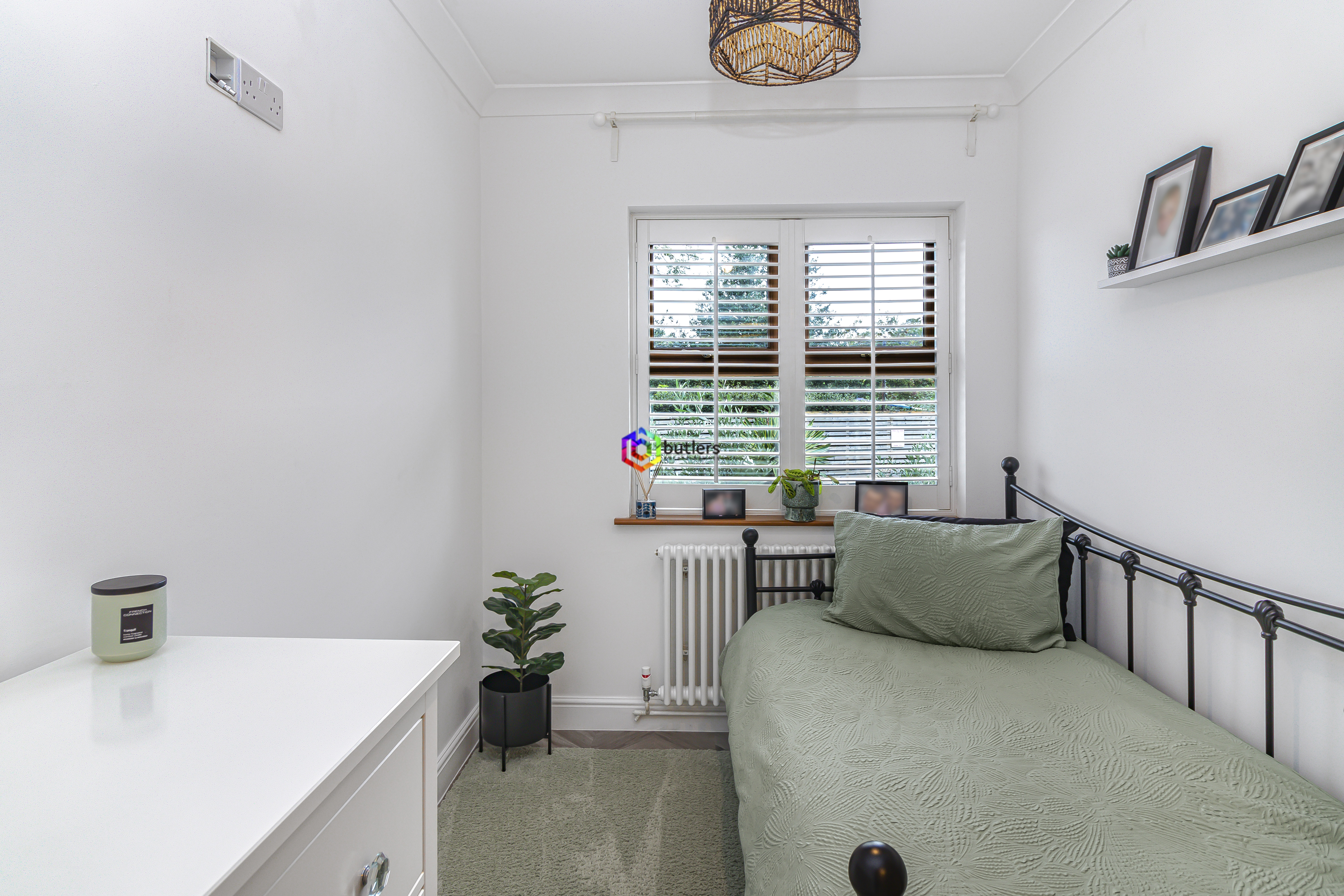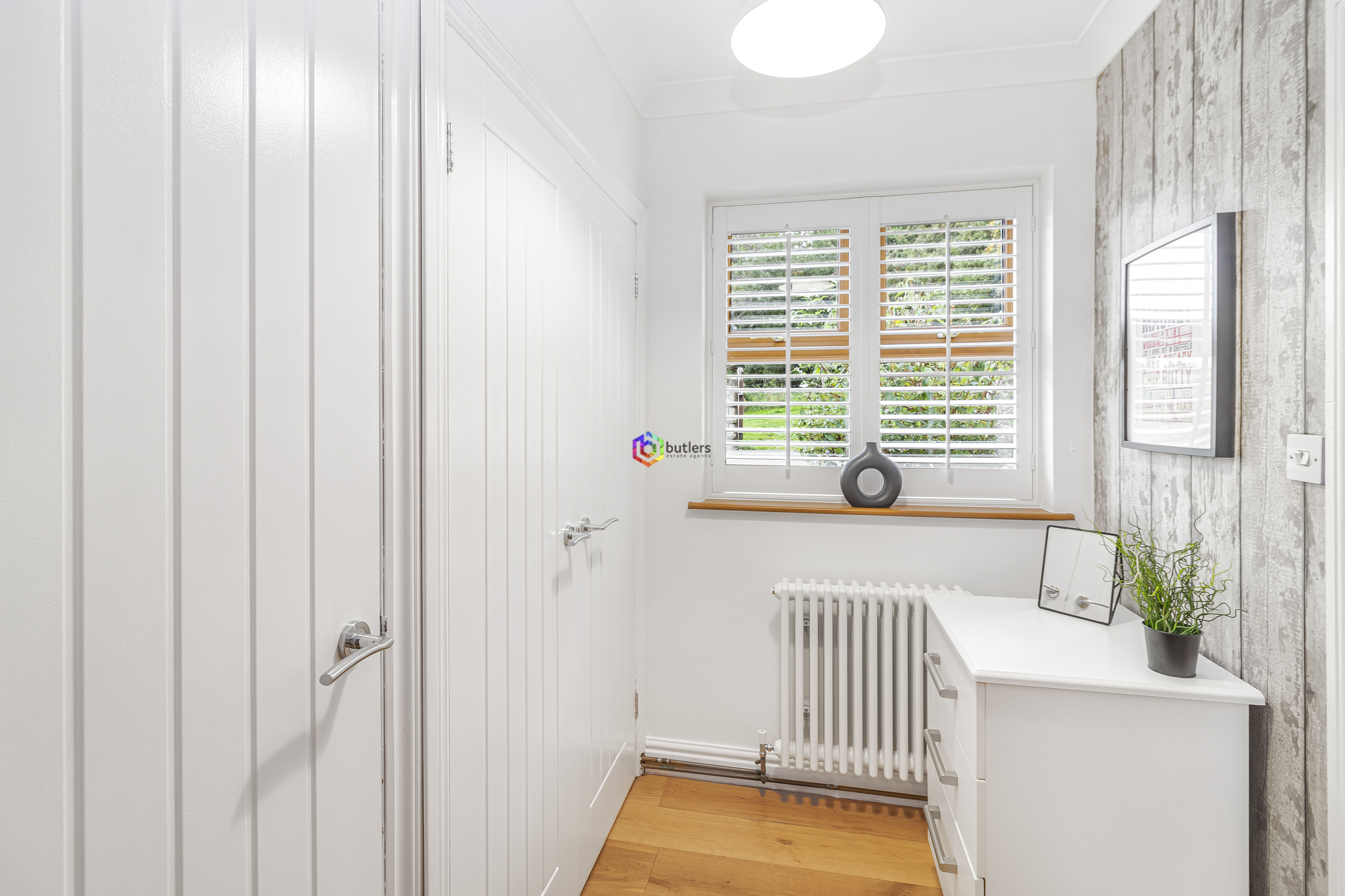 Currently used as a guest room it has a window to the rear and a door to the hall.