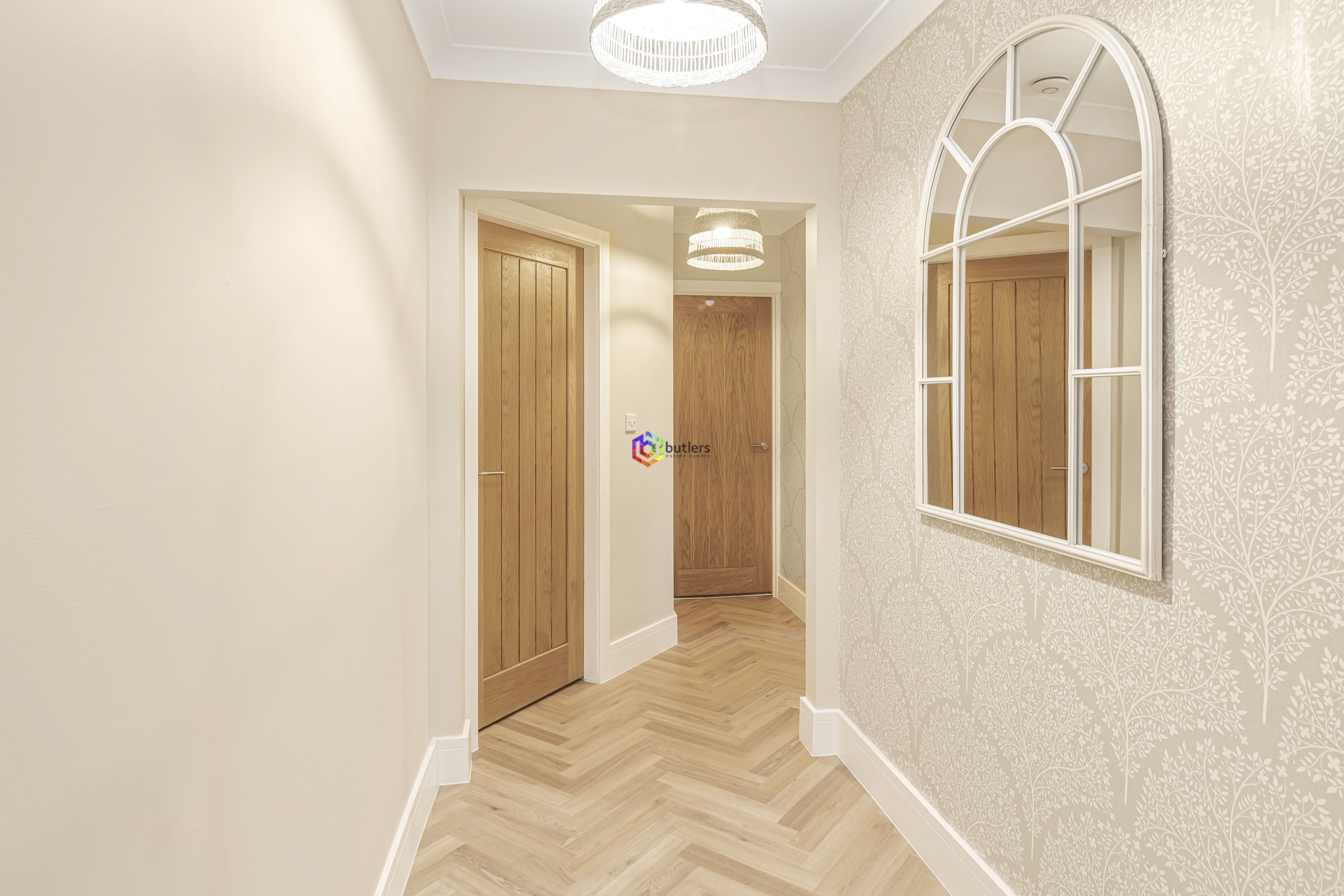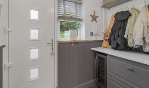 The modern grey front door leads you into the Boot Room with panelling to half height, coat hooks, storage drawers and worksurface along with a handy wine cooler. Access is gained to the WC and the Kitchen / Breakfast room.