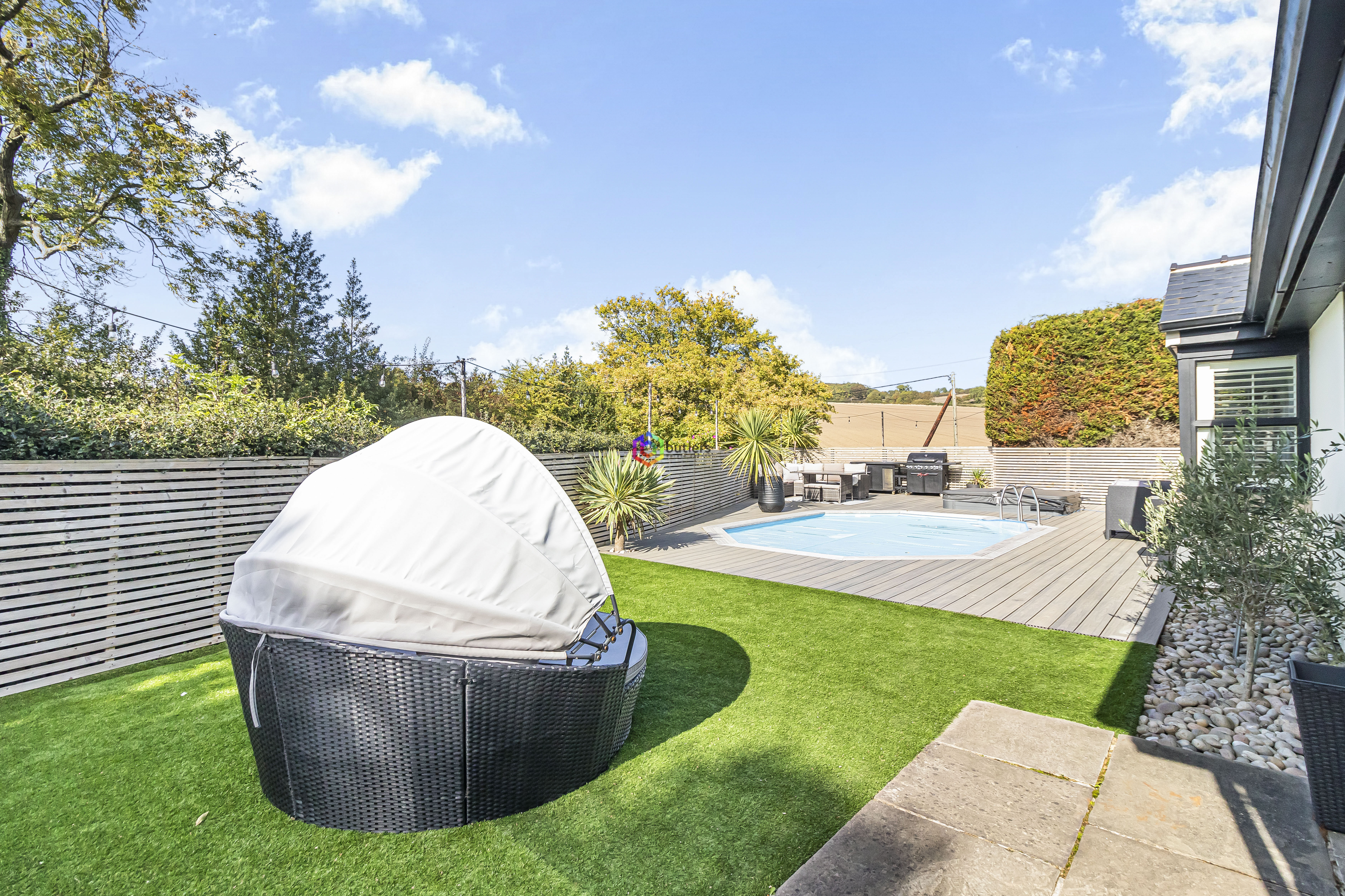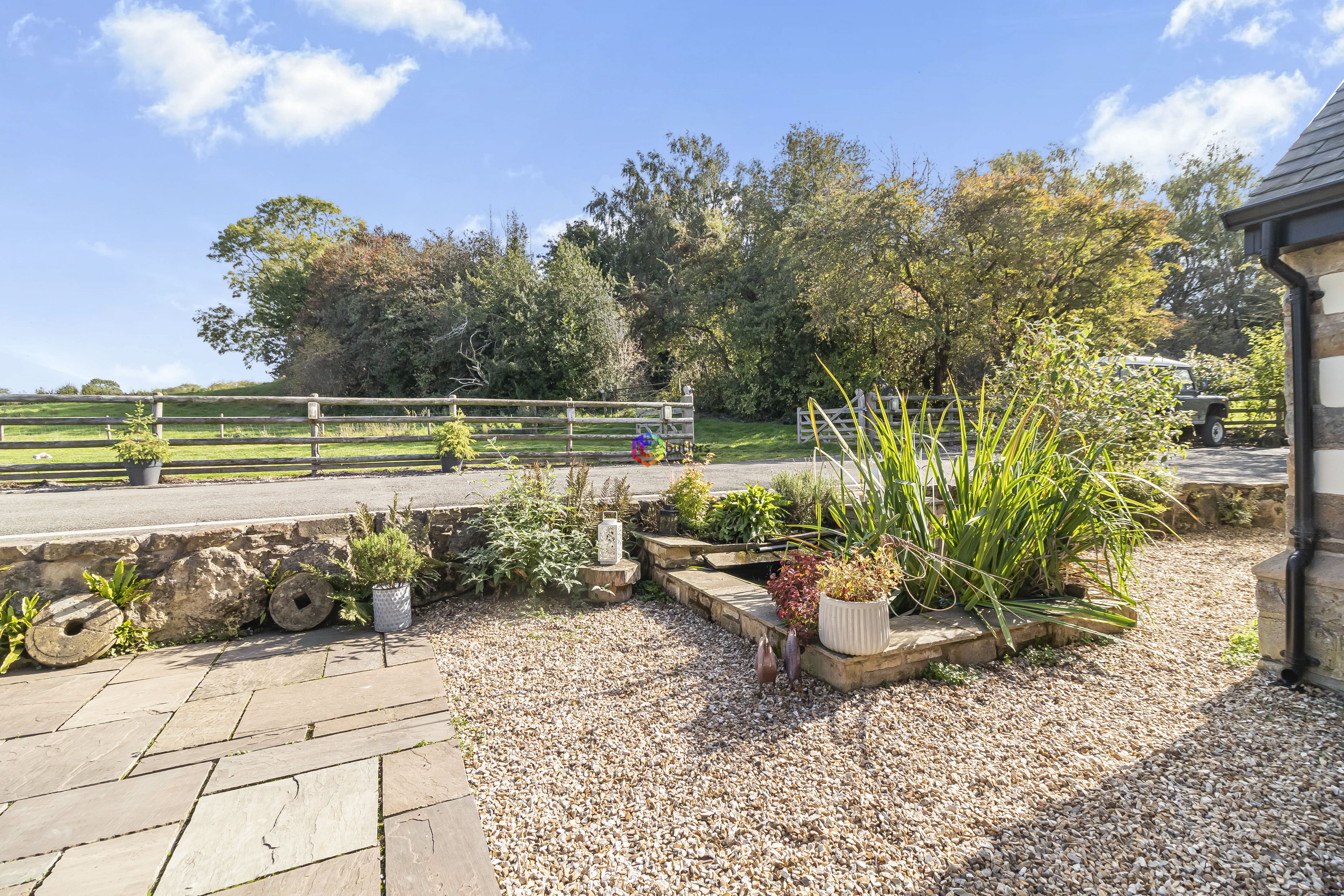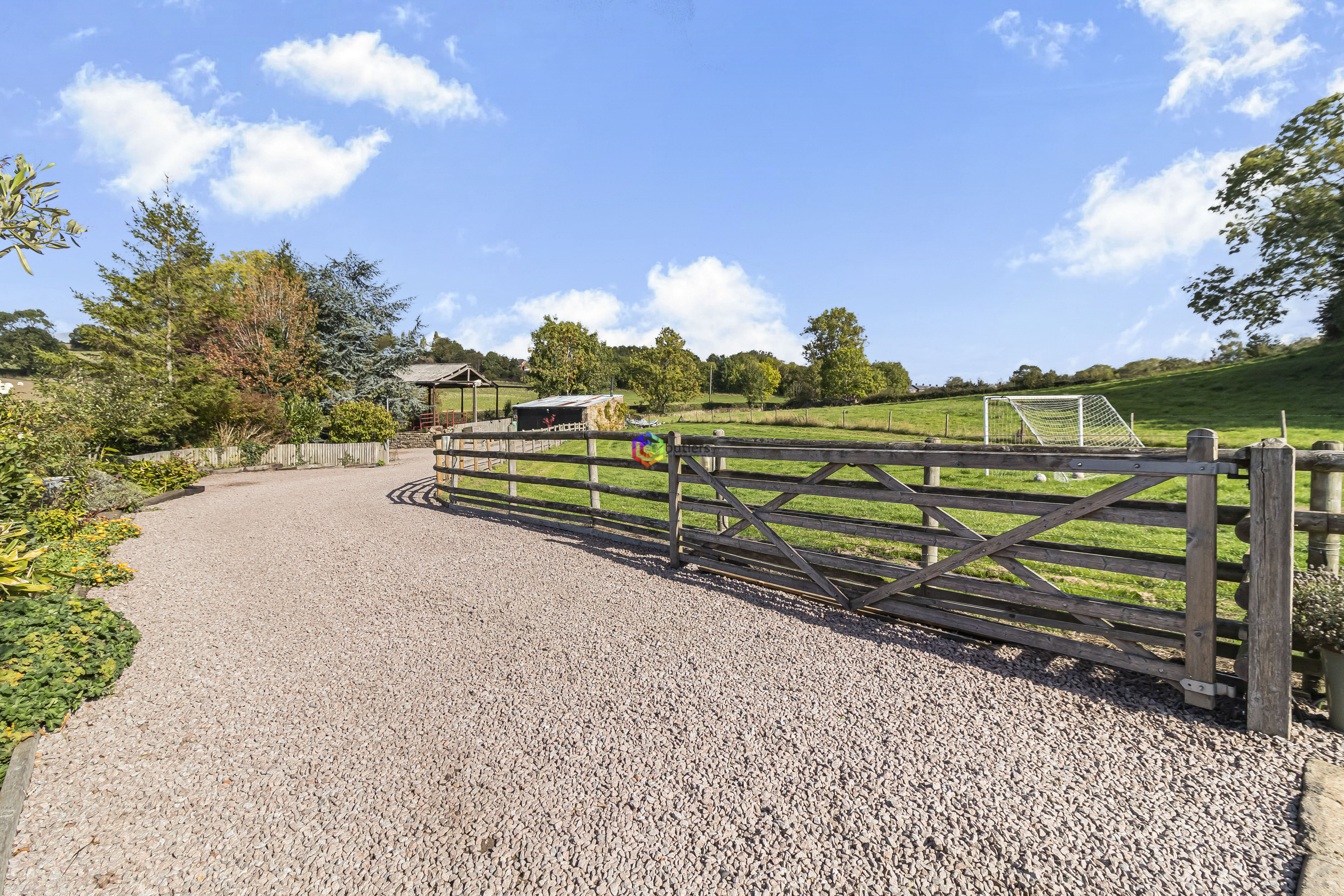 From entering the property through the electric gates and proceeding along the driveway you are adjacent to a paddock, viewers are advised to check title deeds for the land being sold and the further land available to rent. The rear garden with views has been well designed to incorporate a hot tub, heated swimming pool and areas to relax and unwind in the sunshine. Grass areas hosting a love seat complement the space.