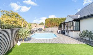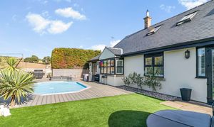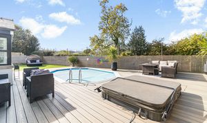 The property offers practicality with a boot room and a convenient WC, ensuring every need is met effortlessly. A heated swimming pool and a relaxing hot tub beckon for blissful moments of leisure, creating a private sanctuary at home.